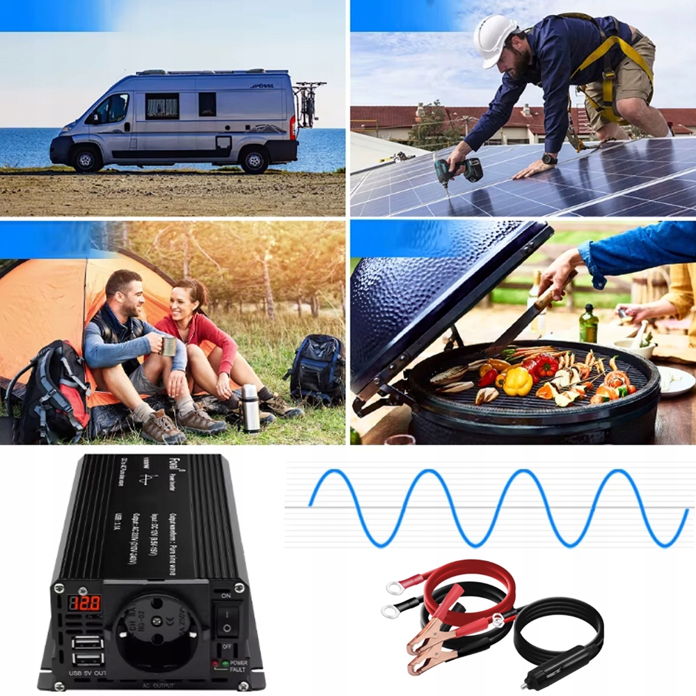 🔌 1 Наш інвертор ідеально підходить до стандартів у Польщі (220 В/50 Гц). Він також працює в машині (12 В/24 В), з сонячними панелями або як аварійний живлення вдома. Один продукт - незліченна кількість програм! 🏠🚗🌞