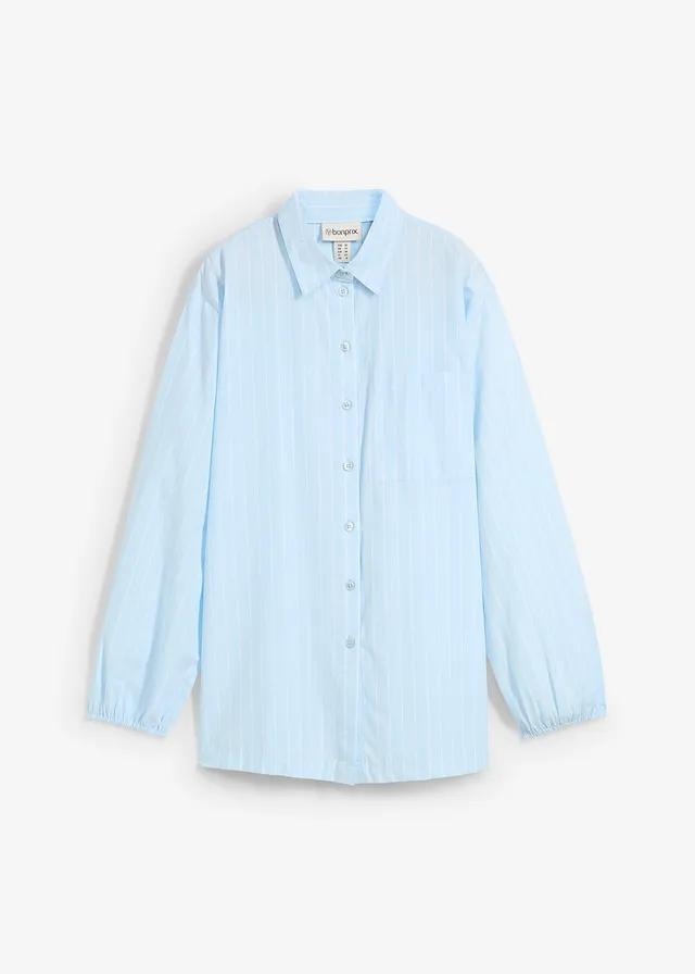 Синя сорочка негабаритна з смугастим коміром - це елегантна та комфортна пропозиція щодня та в офіс. Супутник забезпечує свободу руху, а класичний комір додає стильний характер. Делікатний, вертикальний смугастий візерунок оптично поширив фігуру, підкреслюючи сучасний, модний вигляд. Виготовлений з високоякісного матеріалу, він гарантує комфорт навіть під час тривалого носіння.