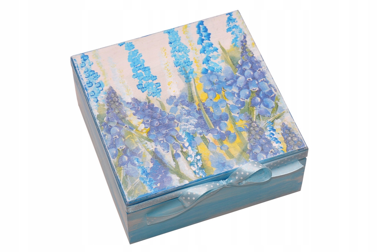 СИНЯ ДЕРЕВ'ЯНА КОРОБКА ПОДАРУНКОВА КОРОБКА РУЧНОГО ДЕКУПАЖУ
