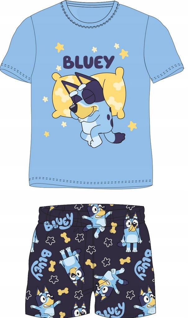 Блакитна піжама з короткими рукавами та шортами. Близький із сильним синім рукавом із міцним шрифтом сплячого блюду. Візертовані шорти в відбитках талії мають еластичну смугу. Приємно до сенсорної бавовни, ніжний принт, а не гума. Синя піжама оригінальна за ліцензією, перша якість з набором тегів.