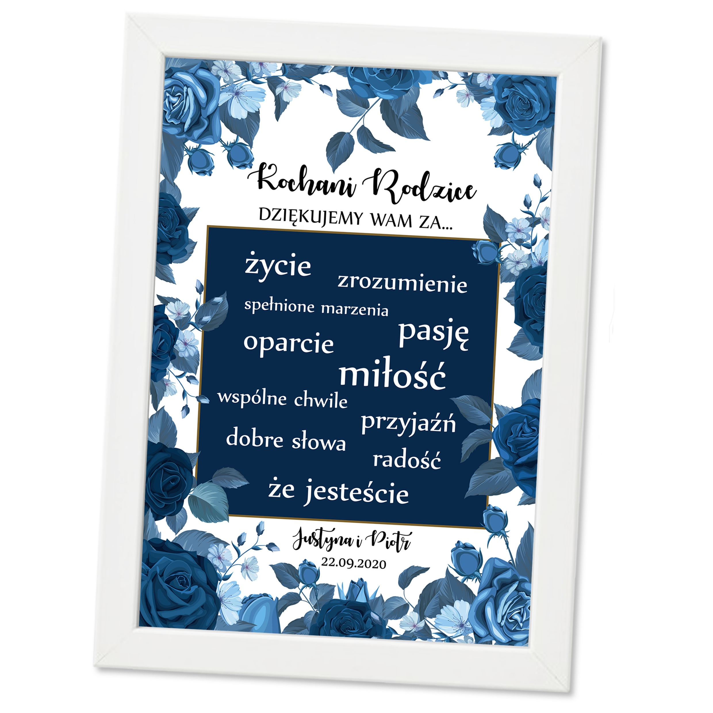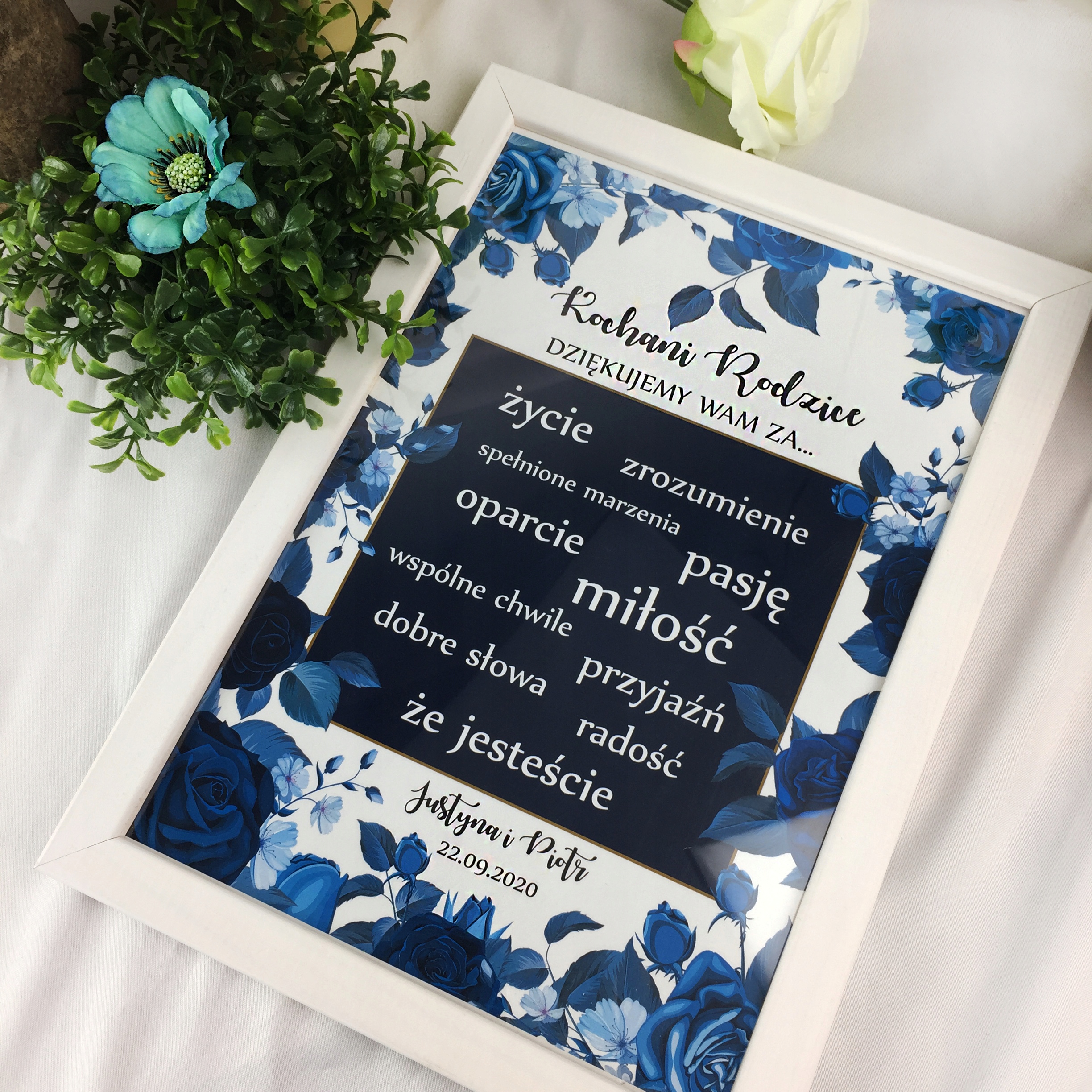 ПЕРСОНАЛІЗОВАНА РАМОЧКА ДЛЯ БАТЬКІВ З ЕЛЕГАНТНИМИ СИНІМИ КВІТАМИ