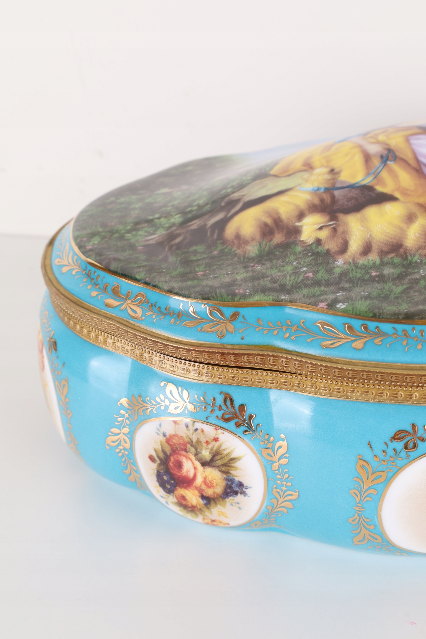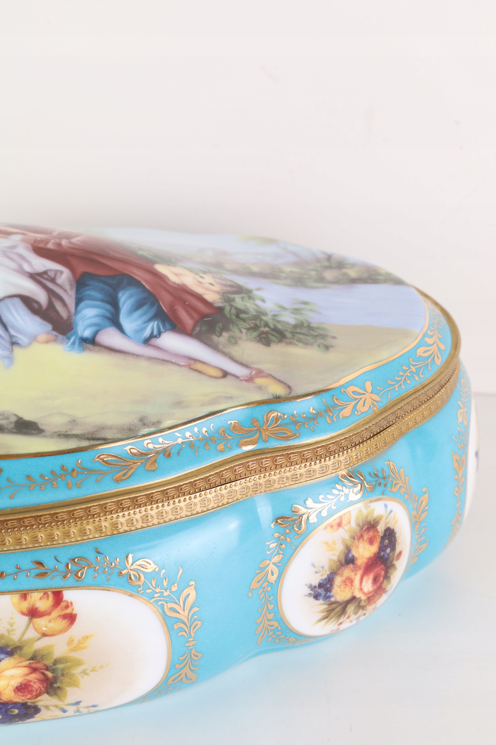 СИНЯ ШКАТУЛКА- БОМБОНЬЄРКА З МАЛЮНКОМ ПОРЦЕЛЯНИ