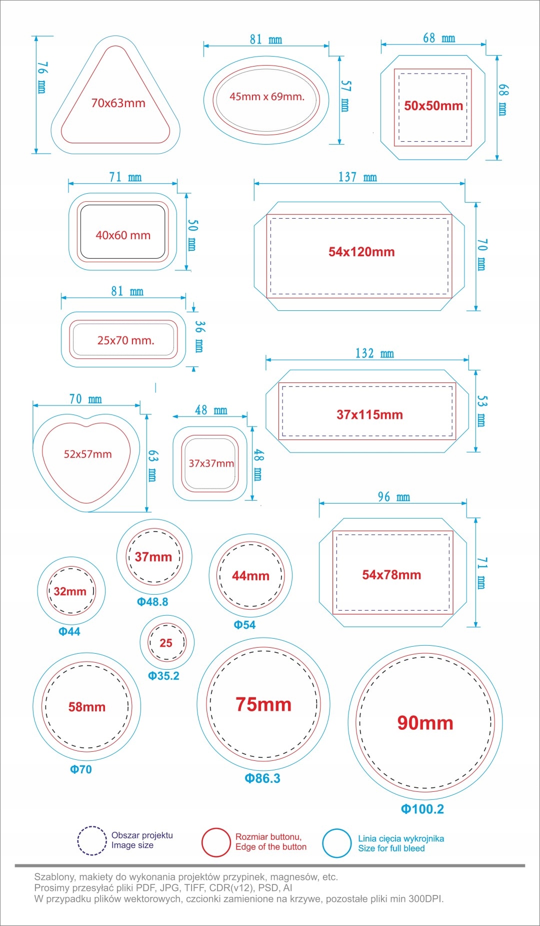 Кольори CMYK, векторні файли - шрифти перетворені на криві, інші файли графіки принаймні 300 точок на дюйм.