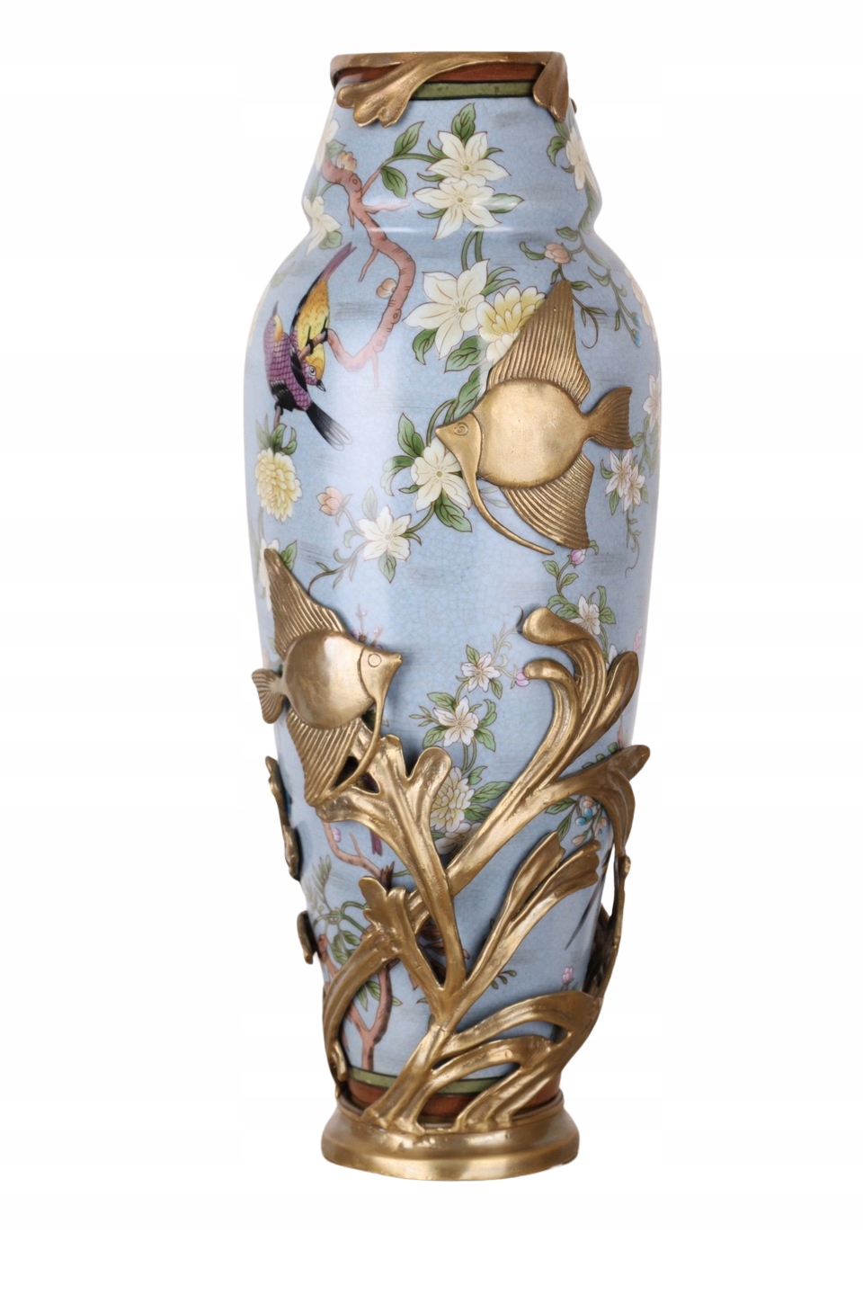 СИНЯ ВАЗА - фарфор щедро прикрашений бронзою РИБКИ