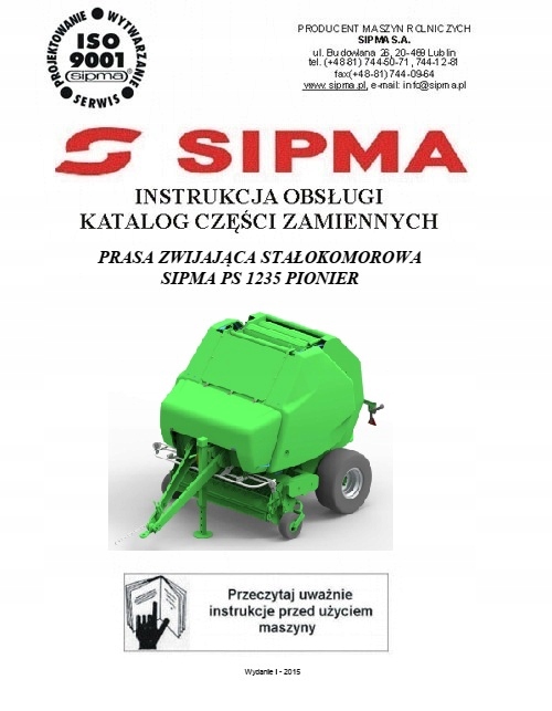 SIPMA PS 1235 Піонер - інструкція з експлуатації, каталог деталей преса (І-2015)
