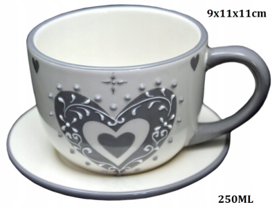 Сіра чашка з підставкою - 250 мл - Колекція різдвяної порцеляни