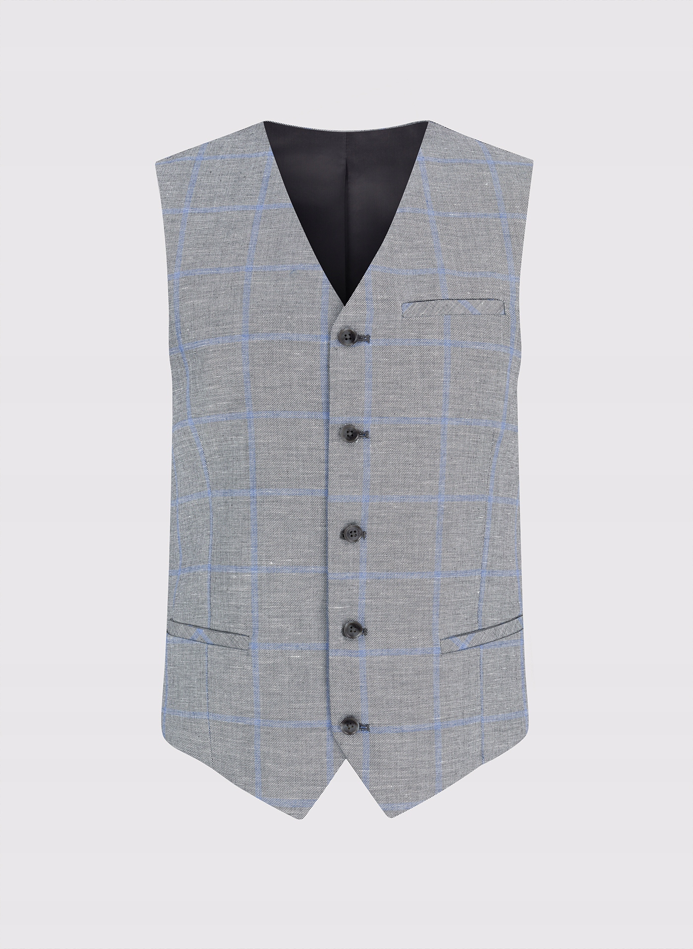 Сірий чоловічий жилет у клітинку від Pako Lorente. Приталений крій Slim Fit підкреслює достоїнства чоловічої фігури. Жилет оснащений ззаду поясом, який регулює обхват талії і дозволяє підігнати її під свою фігуру. Він чудово підійде як до комплекту костюма, так і як доповнення до наряду з джинсами чи чінос, створюючи повсякденний стиль.