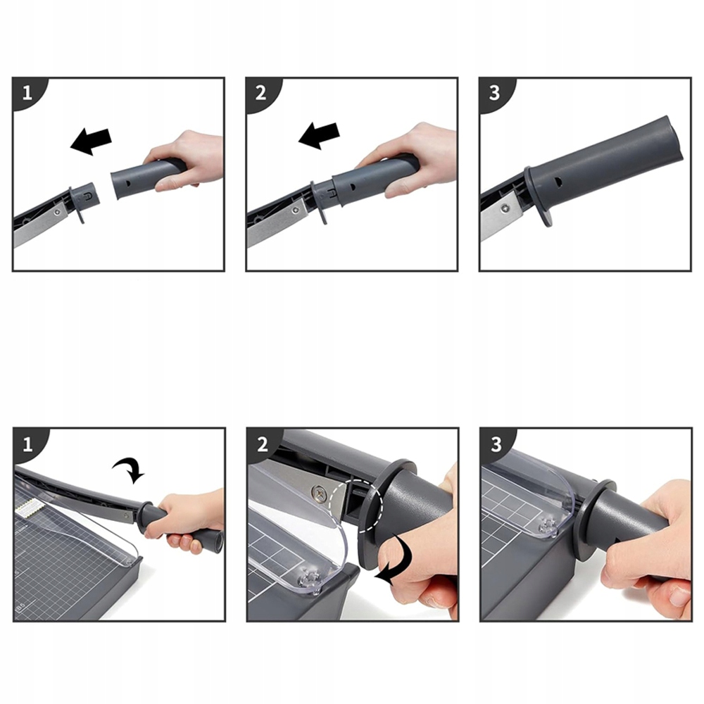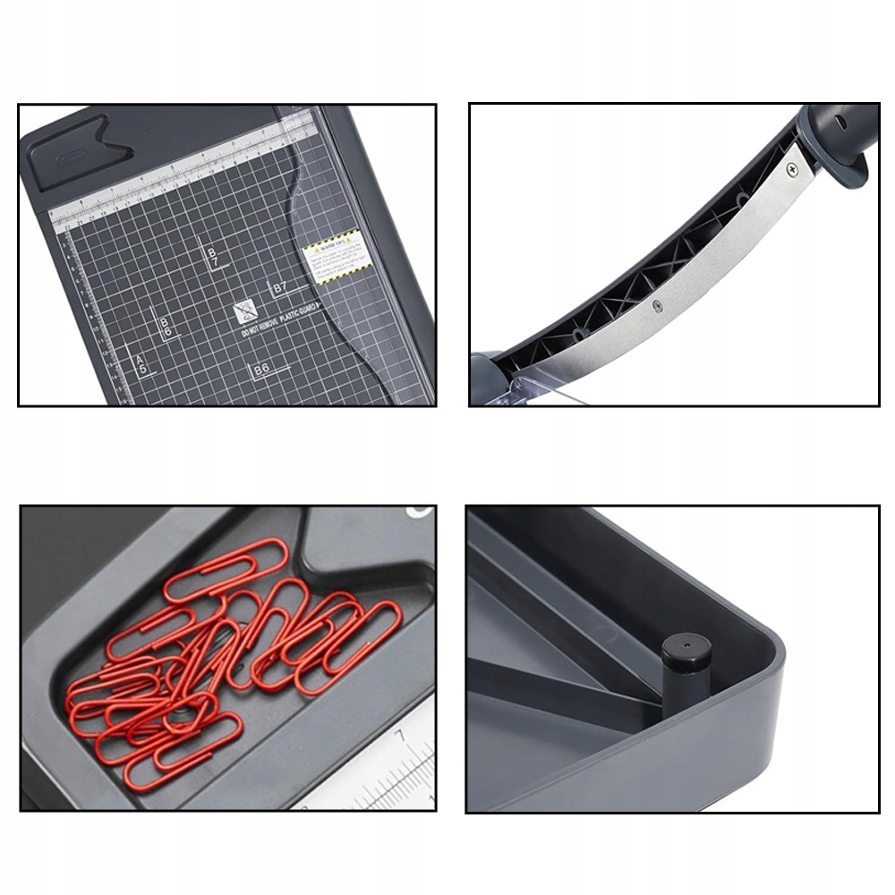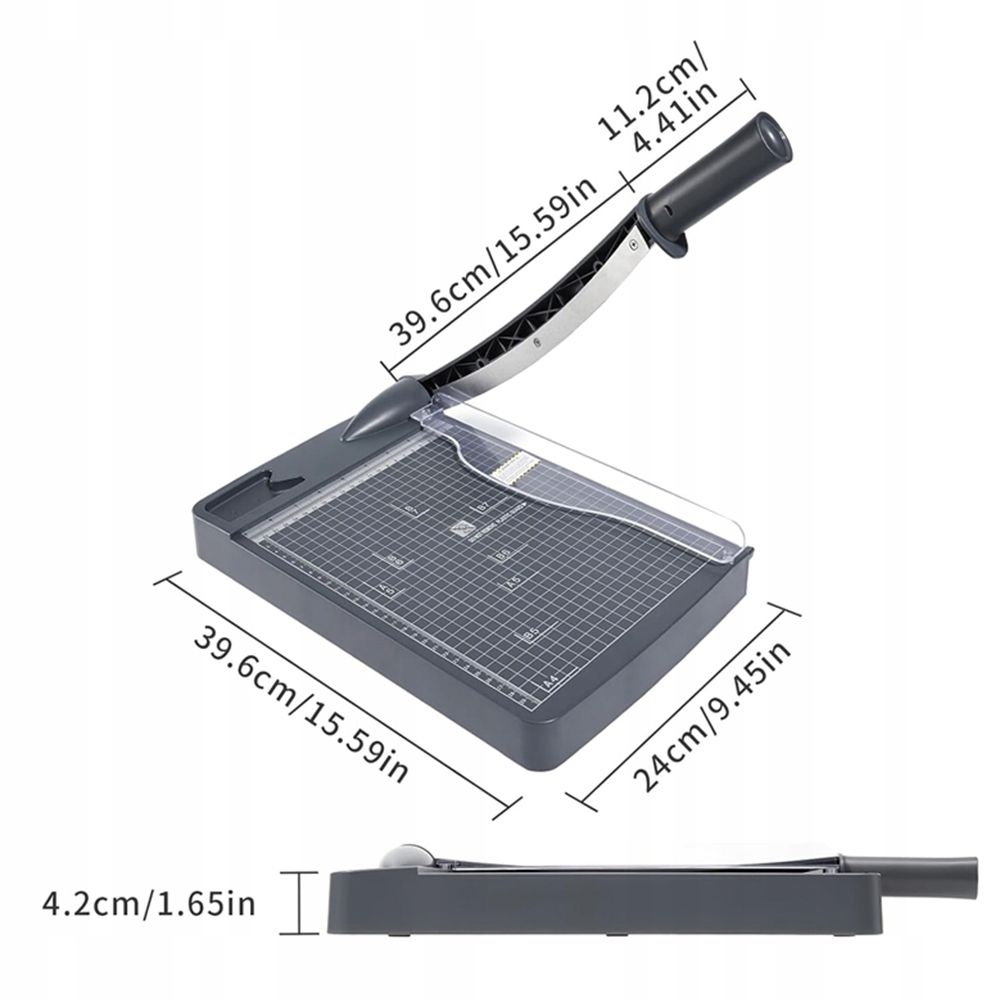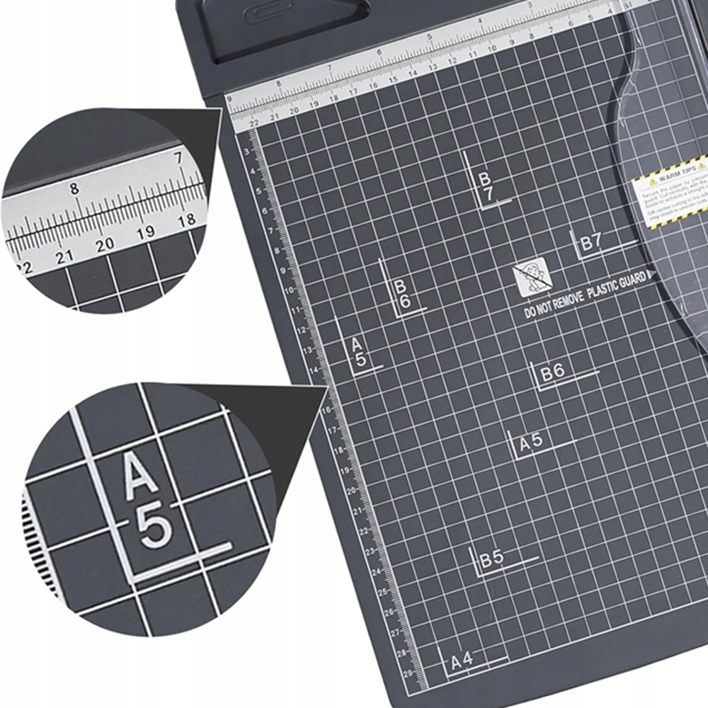 Тример для паперу оснащено унікальною сіткою точності калібрування та шкалою в сантиметрах і дюймах, що допомагає значно зменшити помилки, забезпечити точні вимірювання та підтримувати прямий процес різання. Довжина різання 12 дюймів підтримує різні розміри паперу, як-от A4, A5, B5, B6 і B7.