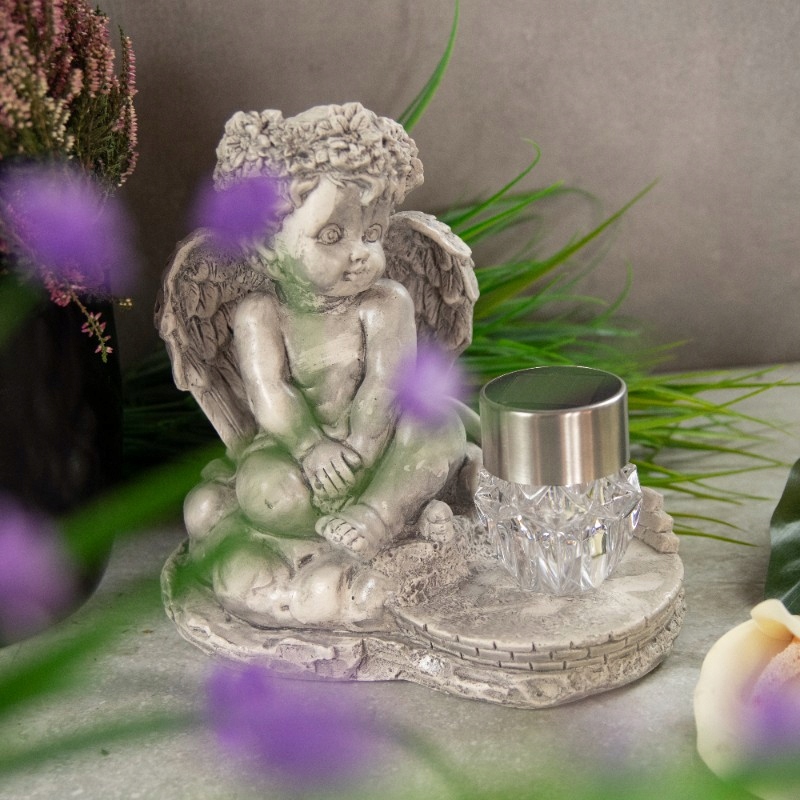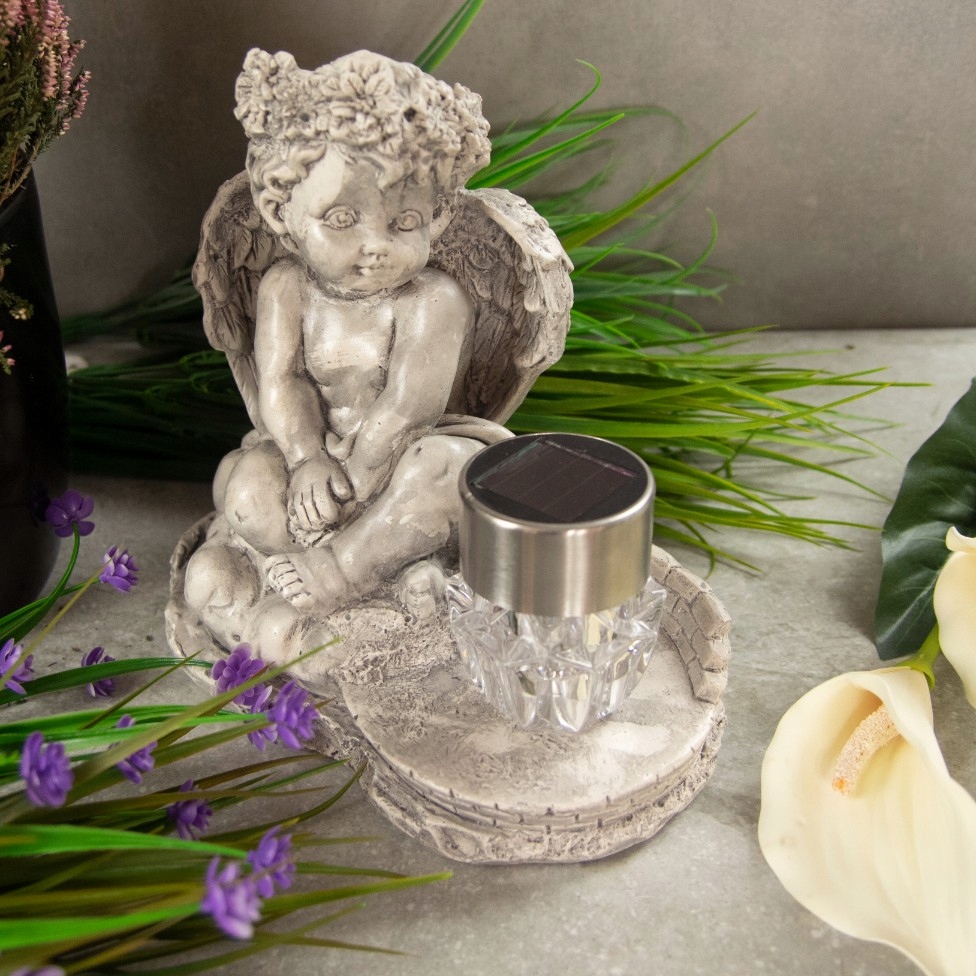 Фантастично декорована гіпсова фігурка з сонячним світлом, яка чудово прикрасить будь-який сад чи надгробок