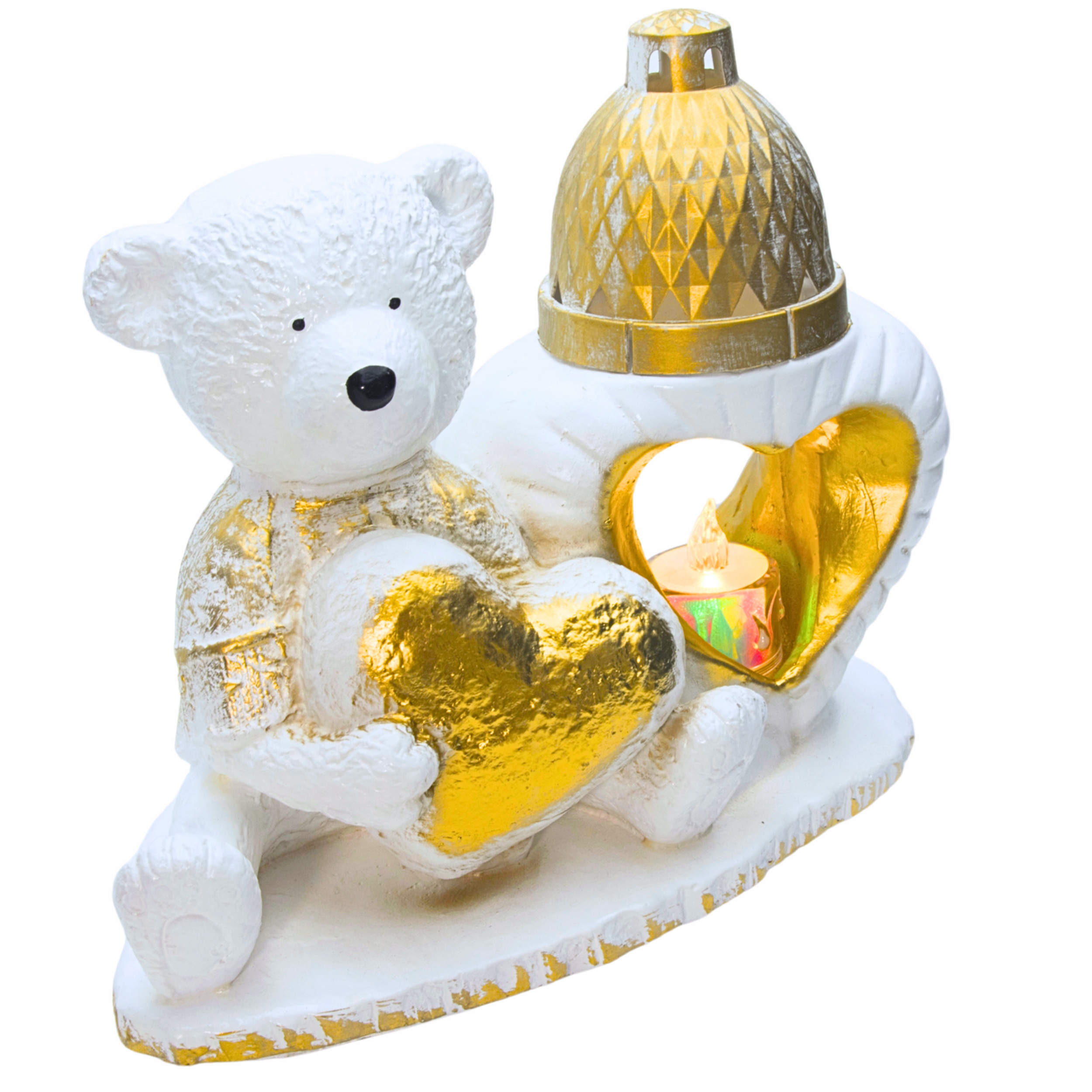 СІРА ГІПСОВА ГРОБНИЦЯ ФІГУРКА Золотий Ведмедик Серце Світлодіодна лампа ГІПСОВИЙ ЛІХТАР