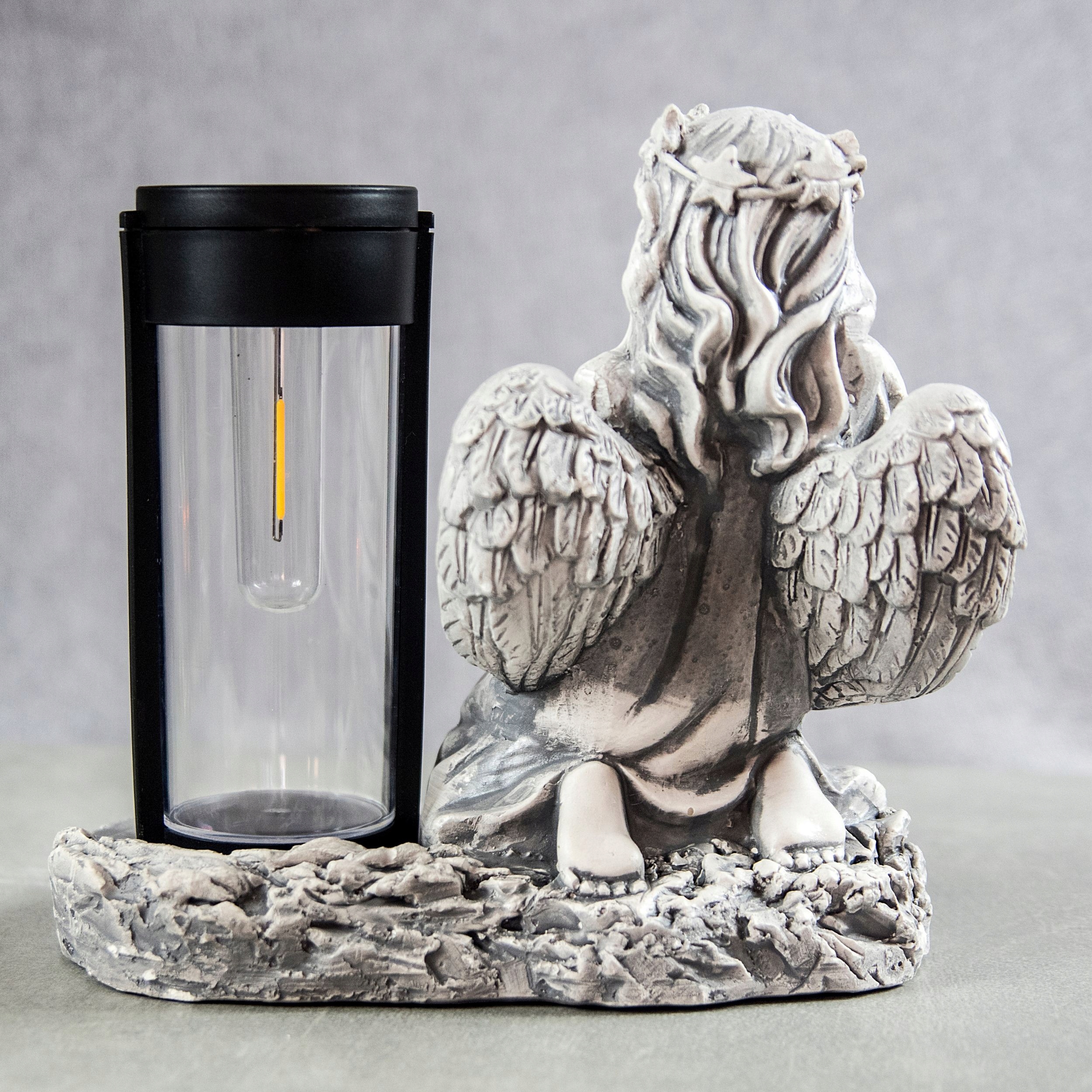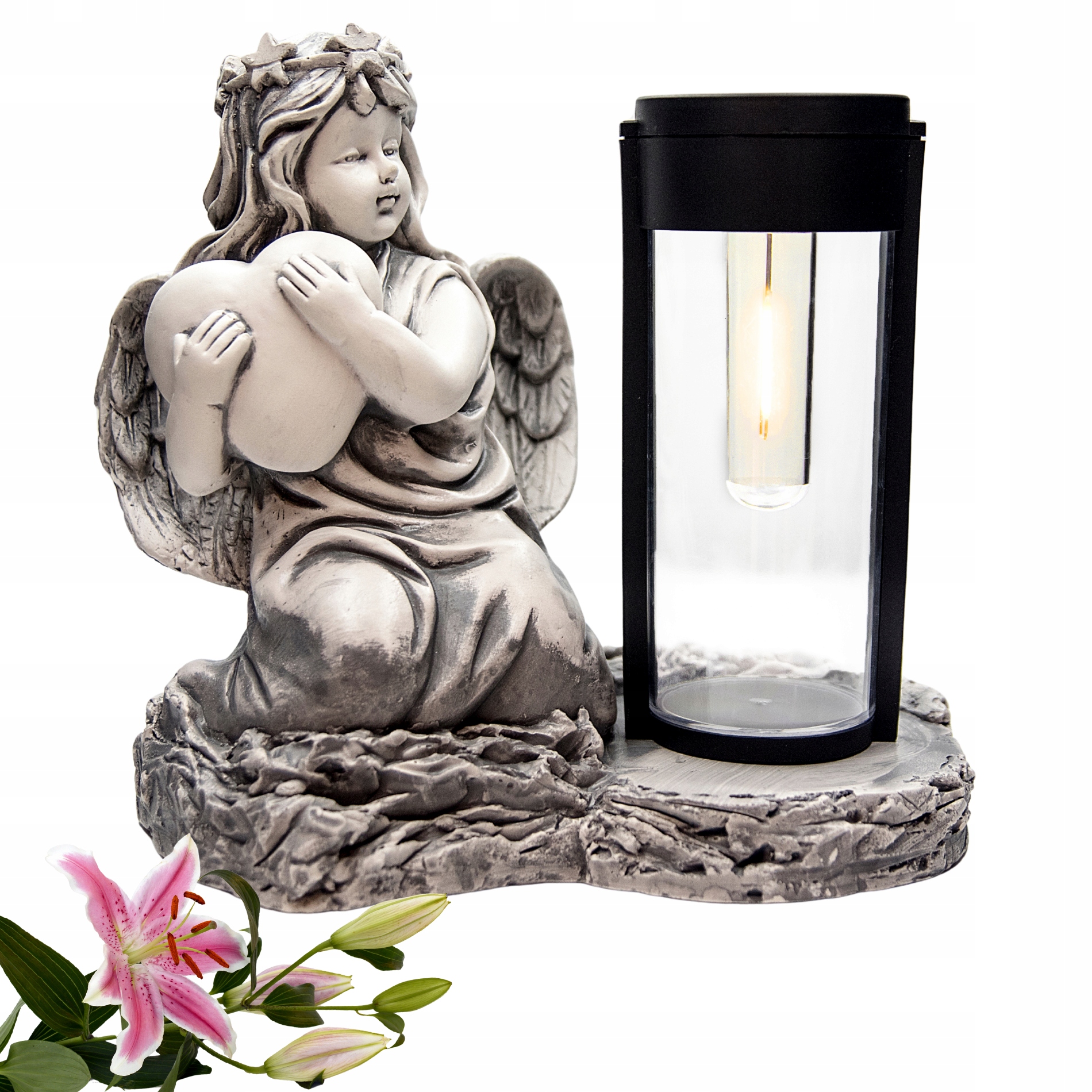 СІРА ГІПСОВА СТАТУЕТКА НА ГРОБНИЦІ Сірий АНГЕЛ СОНЯЧНА Лампа Серце Лампа Рука