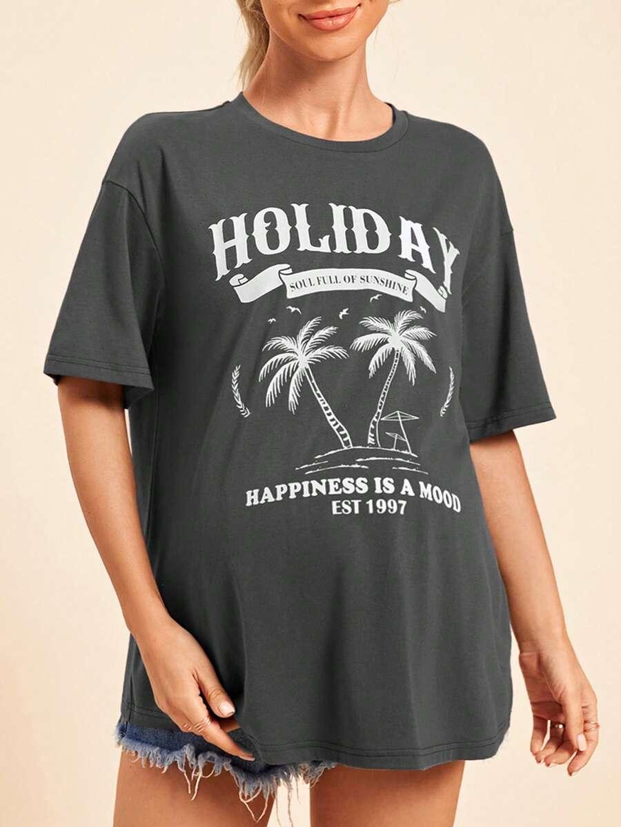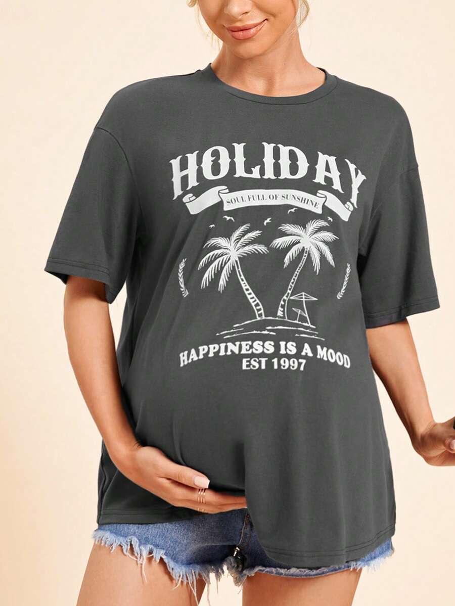 СІРА ЖІНОЧА ФУТБОЛКА ДЛЯ ВАГІСТНИХ З ПРИНТОМ M