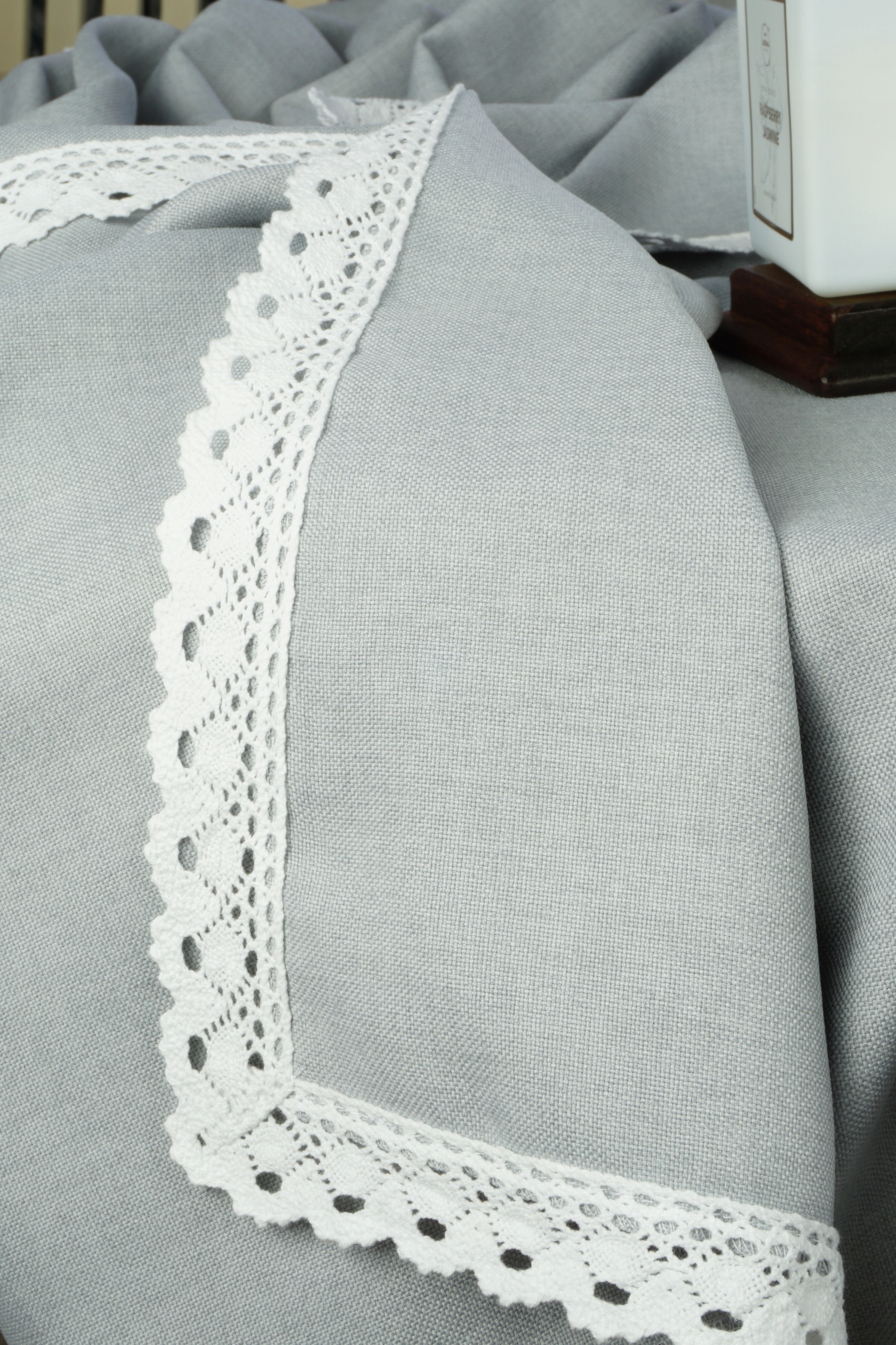 Сіра скатертина з мереживом, стійка до плям 130X250