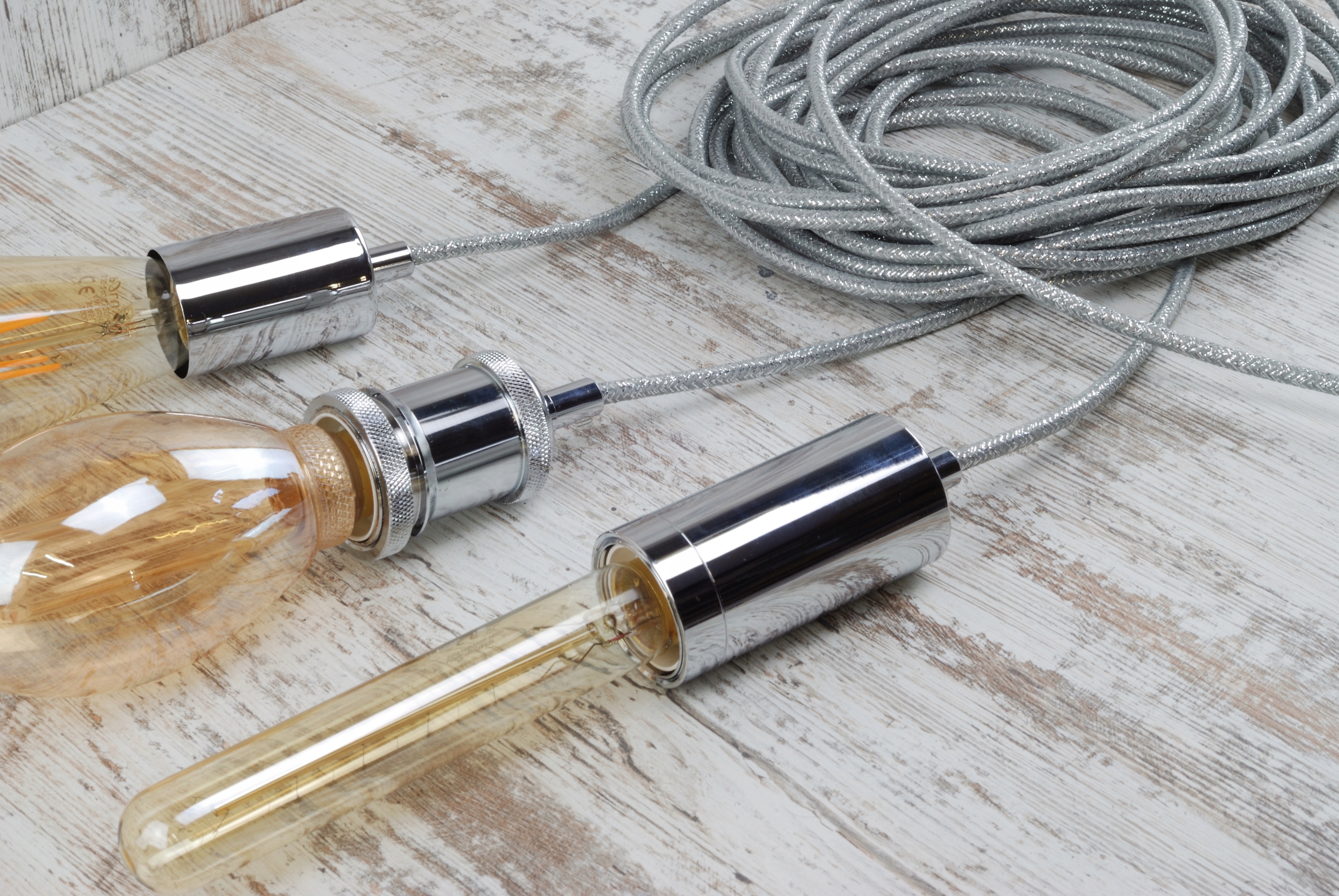 сірий блискітковий металевий плетений кабель, павук, горищна лампа своїми руками