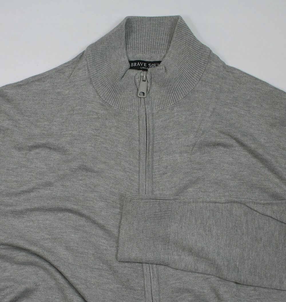 Сірий светр з коміром-стійкою, застібається на блискавку, манжети, чоловічий - BRAVE SOUL