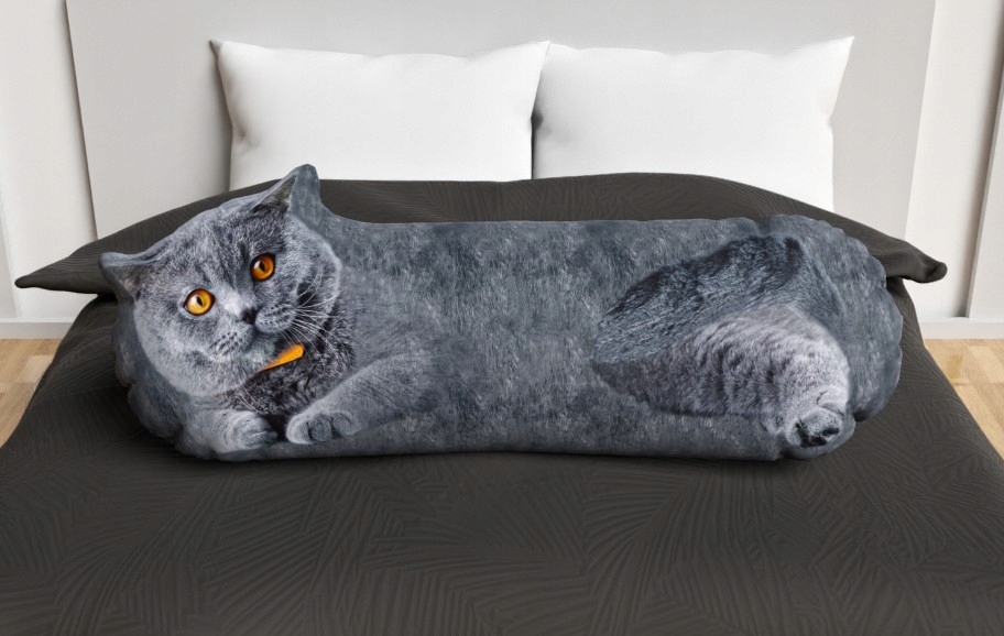 Сірий кіт обіймає подушку