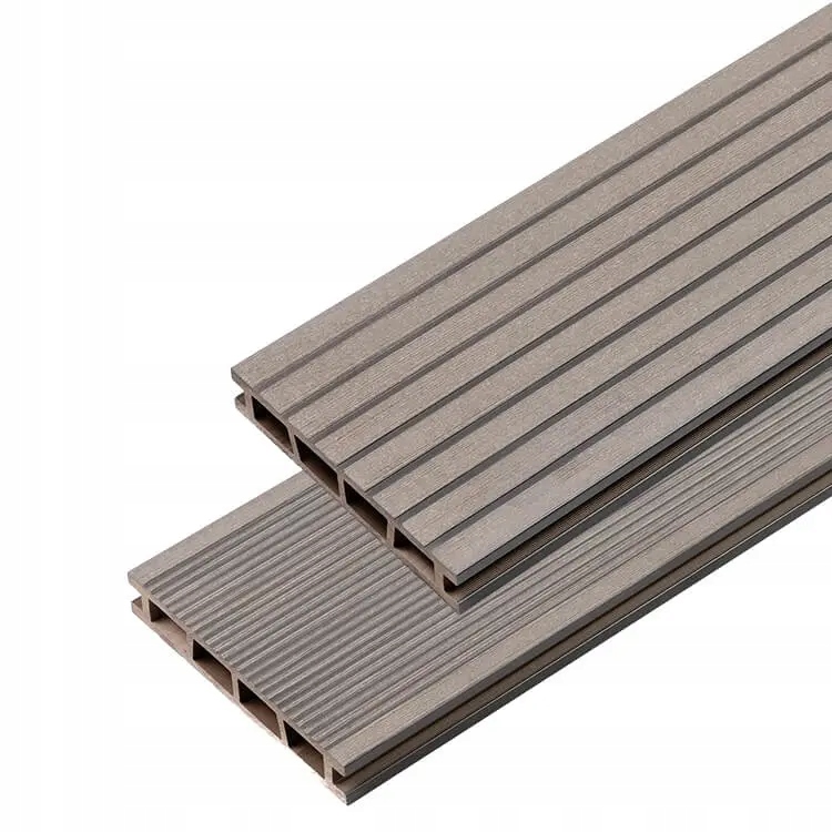Сіра ПВХ терасна дошка ПВХ плити виготовлені з комбінації деревного борошна та ПВХ (полівінілхлориду), що робить їх стійкими до погодних умов та механічних пошкоджень тощо. міцний. Вони не потребують догляду та просочення, їх легко підтримувати в чистоті. При цьому вони зберігають природний вигляд рифленої деревини.