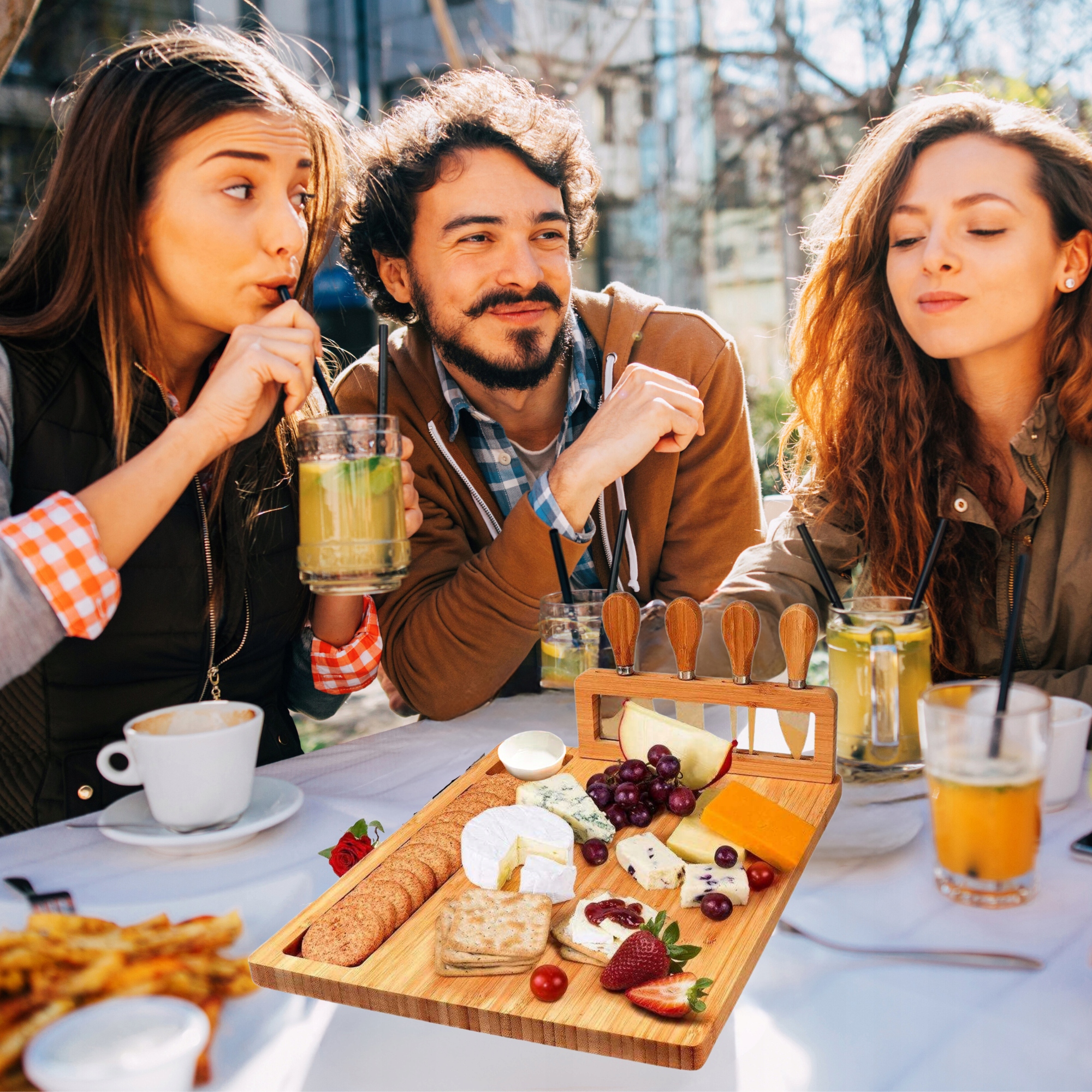 Сирна дошка з нашого набору дозволяє створювати різноманітні композиції, заохочуючи до креативної подачі. Завдяки його універсальності ви можете експериментувати з різними композиціями закусок, що дозволяє проявити свою креативність і здивувати гостей унікальними смаковими композиціями.