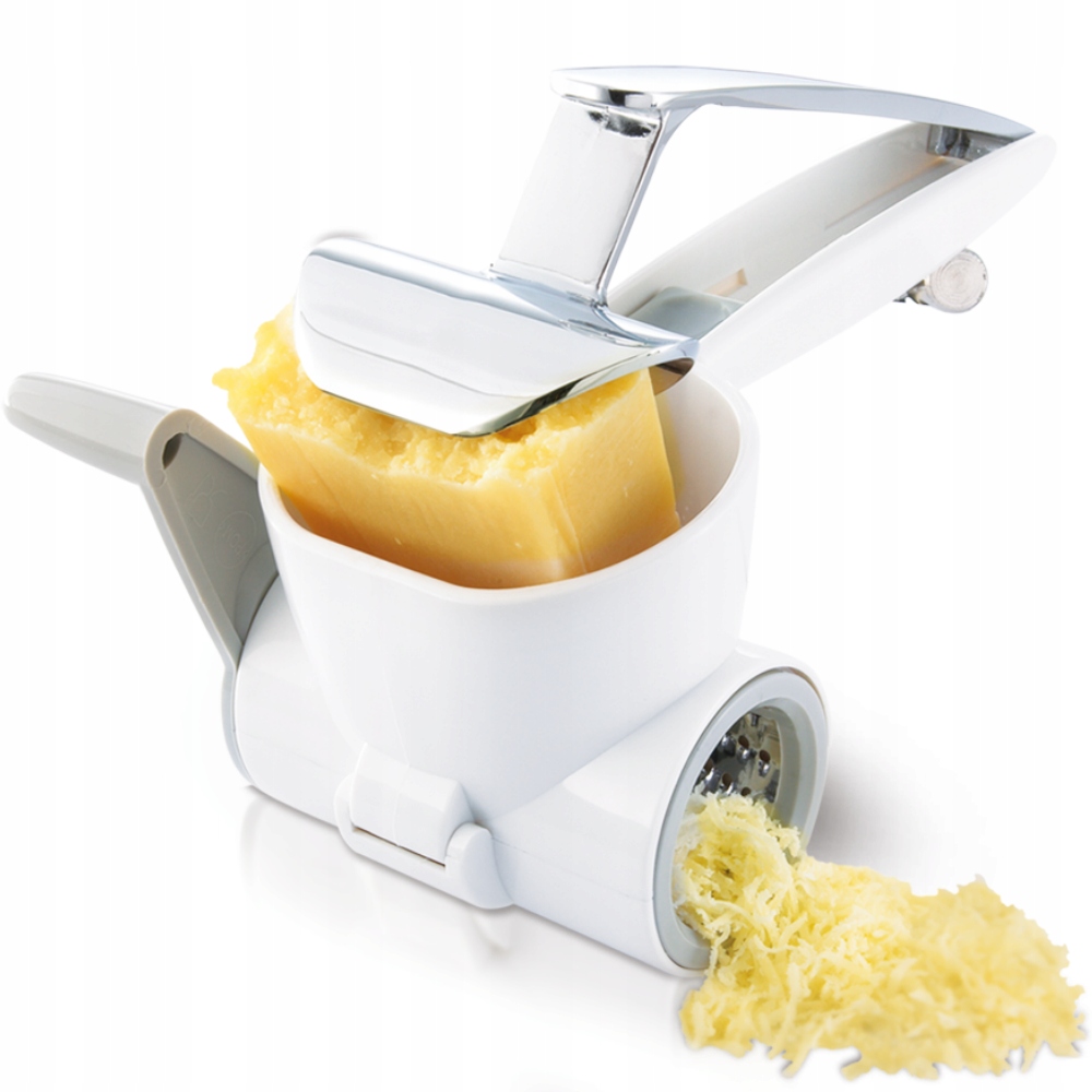 З подрібнювачем сиру Leifheit можна миттєво натерти навіть найтвердіші шматочки сиру, такі як пармезан, маздамер, гауда чи емменталь. Ця модель є поєднанням елегантного та міцна нержавіюча сталь з високоякісним пластиком. Отвори, що відповідають за тертя, мають дуже гострі краї, які не втрачають своїх властивостей навіть після тривалого використання. Зручна сталева ручка забезпечує правильний тиск сиру на тертку - тримаючи м'ясорубку, ми притискаємо сир та сама рука. Подрібнювач сиру Leifheit обертається за допомогою кривошипа, який можна прикріпити до обох боків барабана. Тому ця модель ідеально підходить як для правшів, так і для лівшів. Кривошип не пручається навіть у випадку дуже твердих сортів сиру - тертка не потребує багато енергії. Вузький отвір барабана запобігає неконтрольованому висипанню натертого вмісту. М'ясорубку можна розібрати на частини, що значно полегшує утримання її в чистоті. Ця модель стане ідеальним вибором для всіх, хто любить свіжотертий пармезан додавати в пасту або розтягувати сир у смачну піцу.