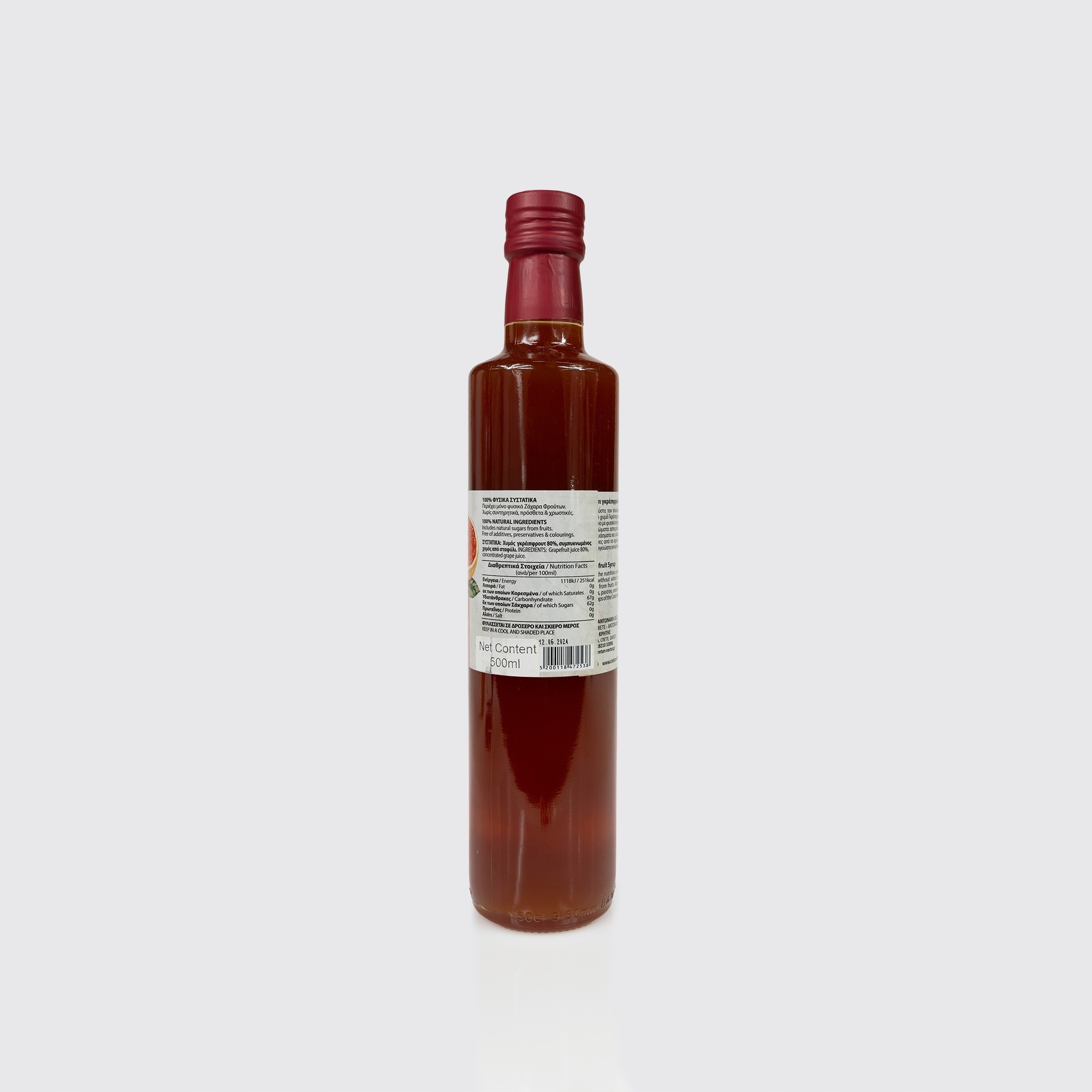Грецький концентрований сік грейпфрута - це напій з чітким і освіжаючим смаком, який, безумовно, оживляє ваше піднебіння. Що складається з 80% соковитого соку грейпфрута, додає енергію та освіжаючий характер. Для досягнення делікатної солодкості та збалансованого смаку до цього соку додавали концентрований виноградний сік.