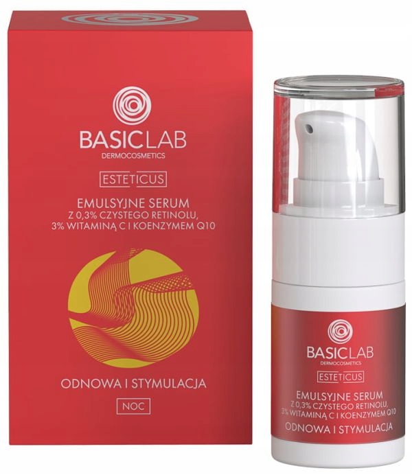 Емульсійна сироватка Basiclab Esteticus з 0,3% чистого ретинолу, 3% вітаміну С і коензиму Q10 15 мл