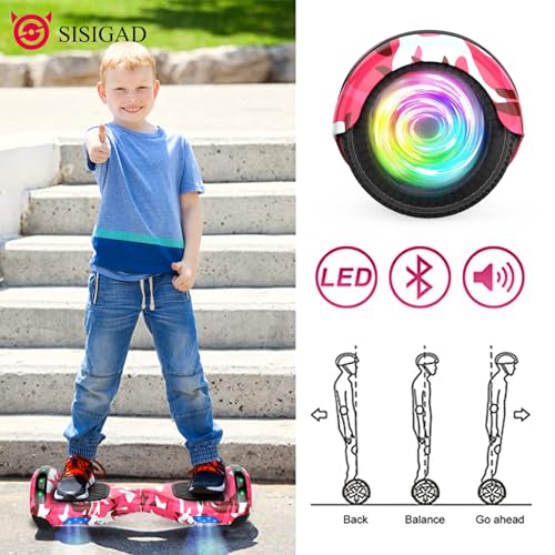 ✅SISIGAD Hoverboard ЕЛЕКТРИЧНИЙ СКЕЙТБОРД із сидінням, рожевий світлодіод Б/У