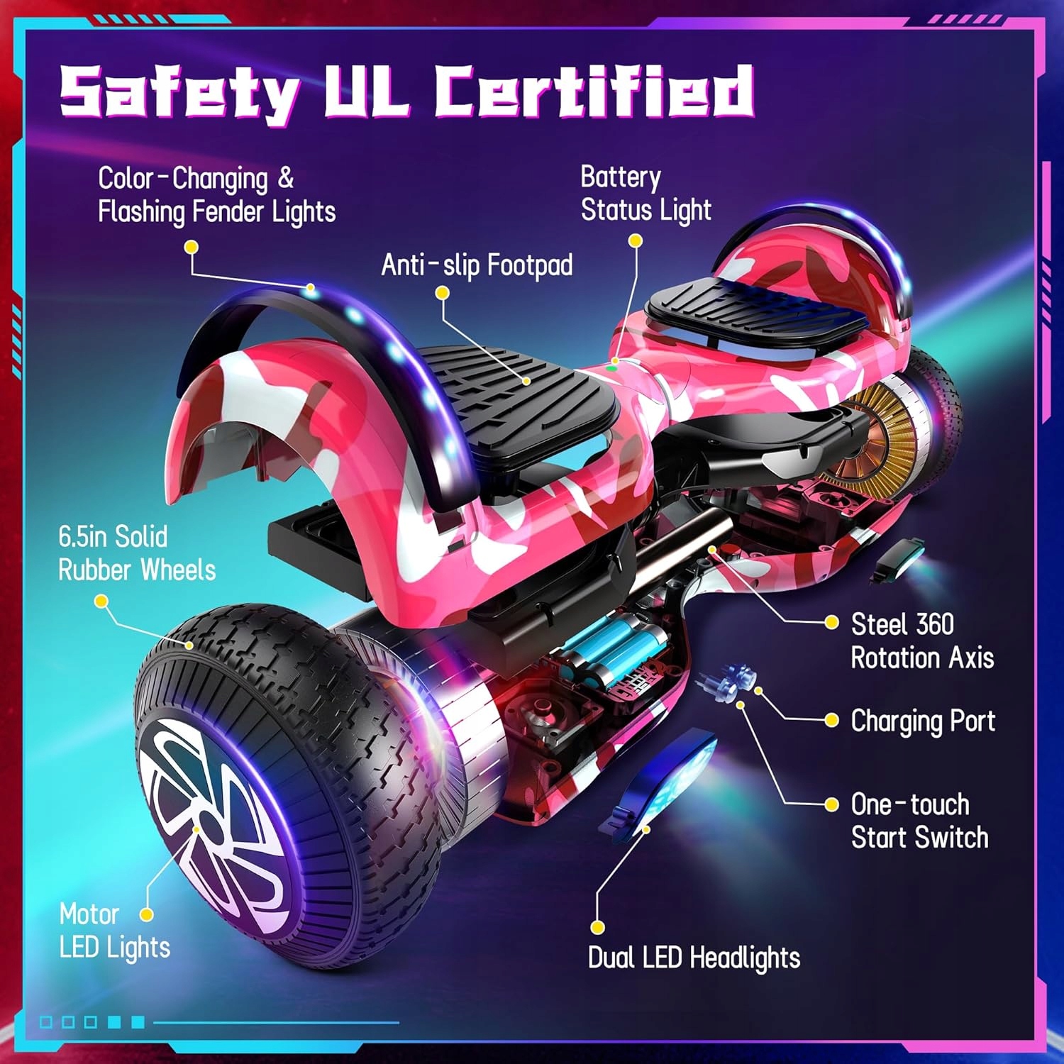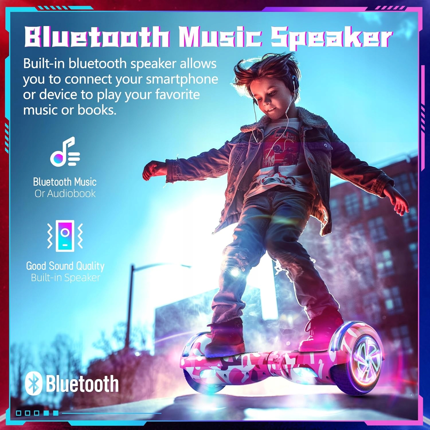 ▶▶Світлодіодні колеса та Bluetooth: електричний самобалансуючий самокат зі світлодіодними ліхтарями робить вас більш привабливими під час їзди, а їзда вночі може забезпечити вашу безпеку. Bluetooth сумісний з усіма системами iOS і Android, ви можете повною мірою використовувати динаміки, вбудовані в самобалансуючі електричні скутери, щоб слухати улюблену музику під час катання.