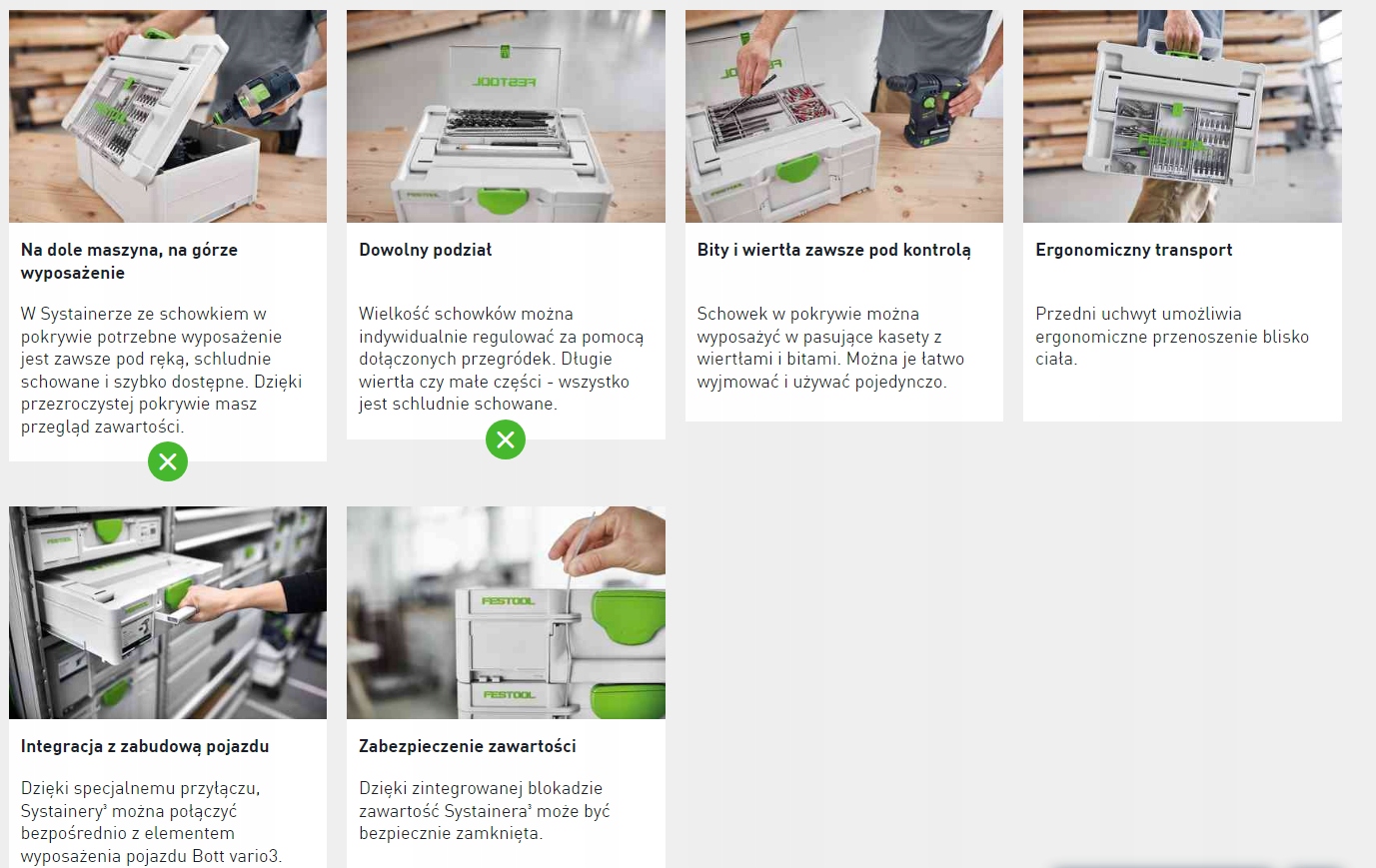 - Сумісність із усім b> Система Festool Systainer³, яка гарантує легке підключення та транспортування.