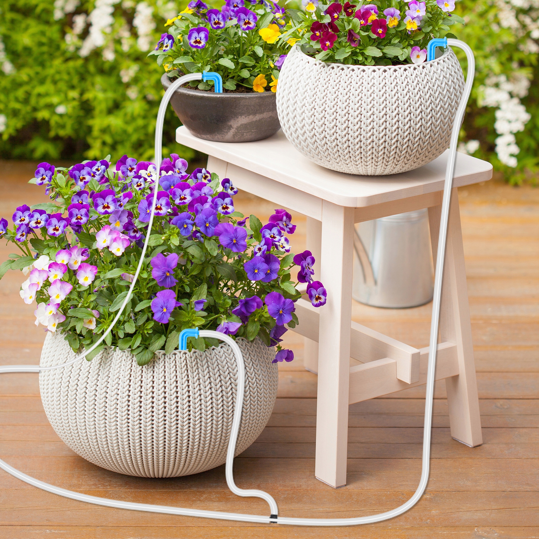Система крапельного зрошення може рівномірно поливати до 10 горщиків з рослинами та подає воду безпосередньо до коренів рослин, щоб вода могла повністю поглинатися, а втрати води були мінімізовані. У порівнянні зі звичайними методами поливу ви можете заощадити до 70% води.