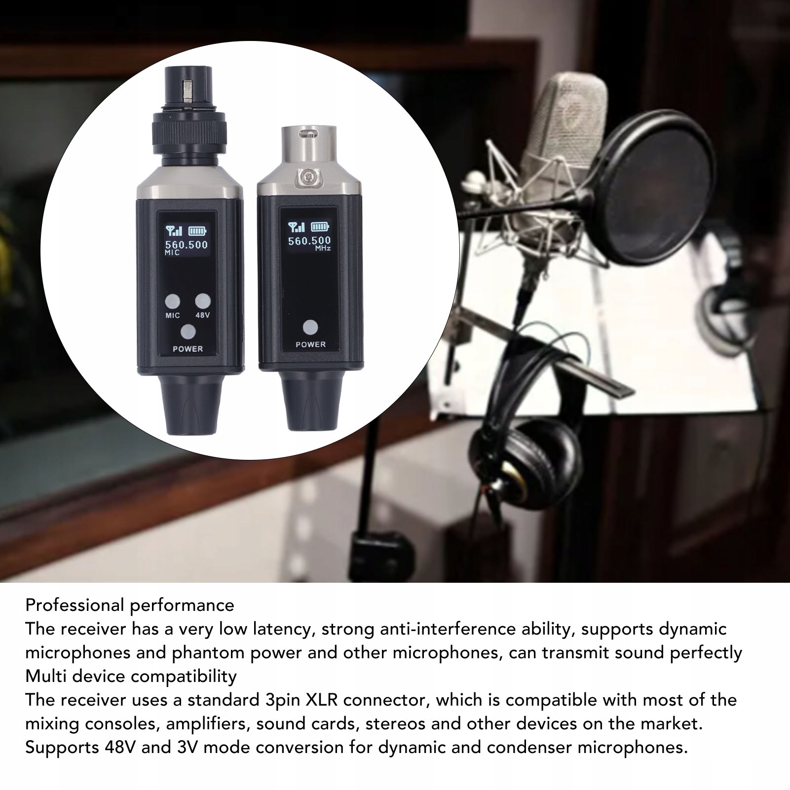 4. Сумісність із кількома пристроями: приймач використовує стандартний 3-контактний роз’єм XLR, який сумісний із більшістю мікшерних пультів, підсилювачів, звукових карт, стереосистем та інших пристроїв на ринку та підтримує перетворення режимів 48 В та 3 В для підключення динамічних мікрофонів і конденсаторних мікрофонів.