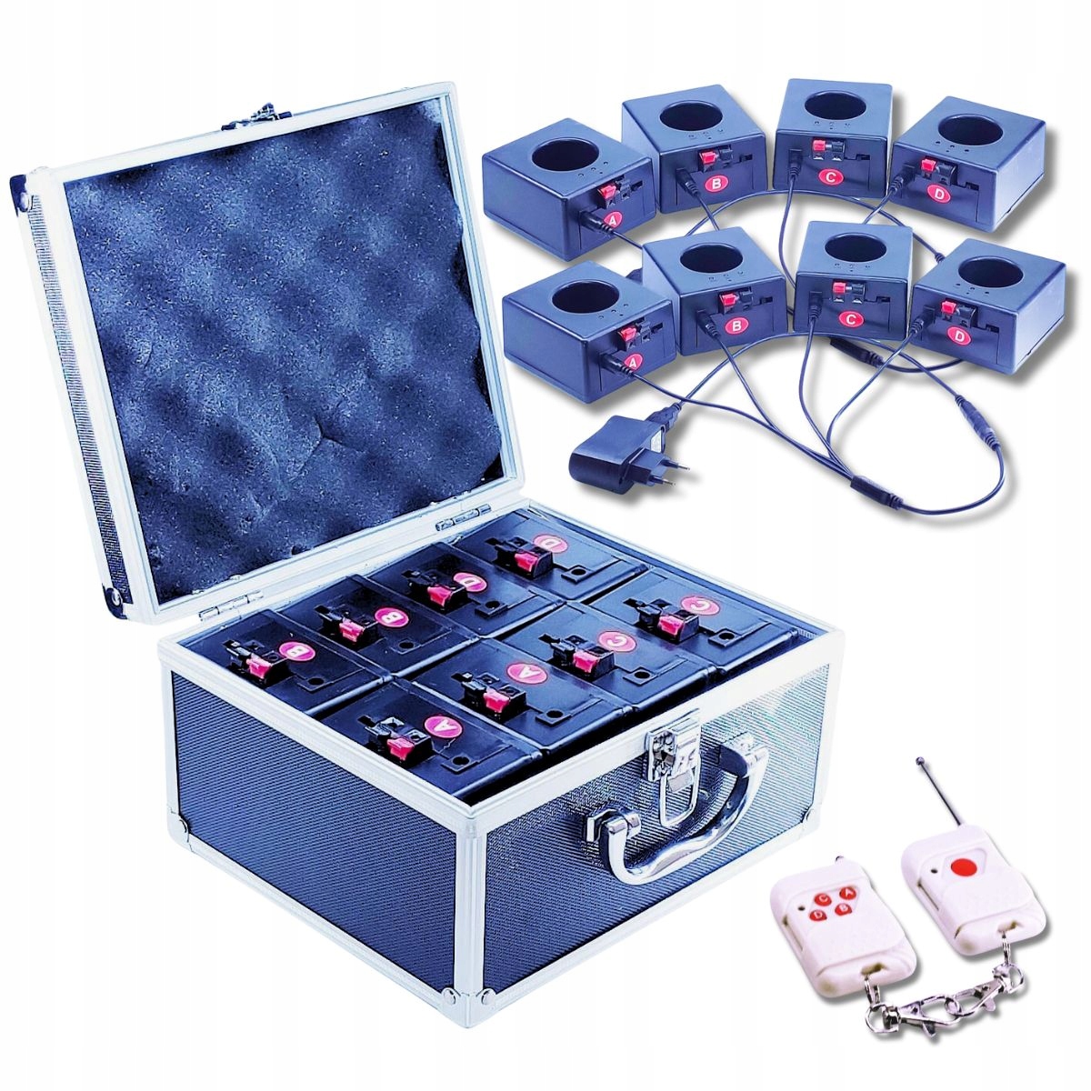 8 станцій, кожна з яких запускається дистанційно, і 2 пульти дистанційного керування, що працюють незалежно один від одного, разом із елегантною валізою.