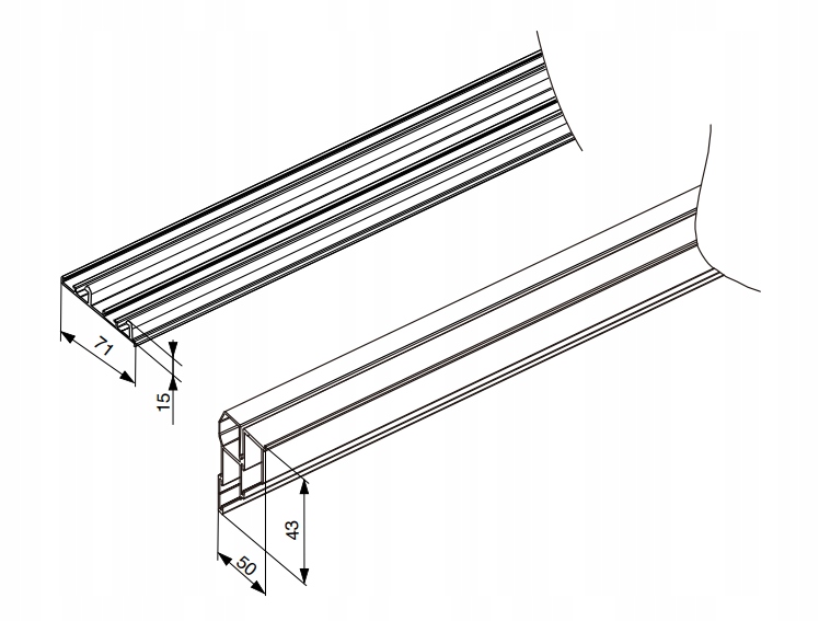 Високоякісна система розсувних дверей від RIEX анодованого срібла. Система оснащена системою тихого закривання та візками вантажопідйомністю 80 кг.