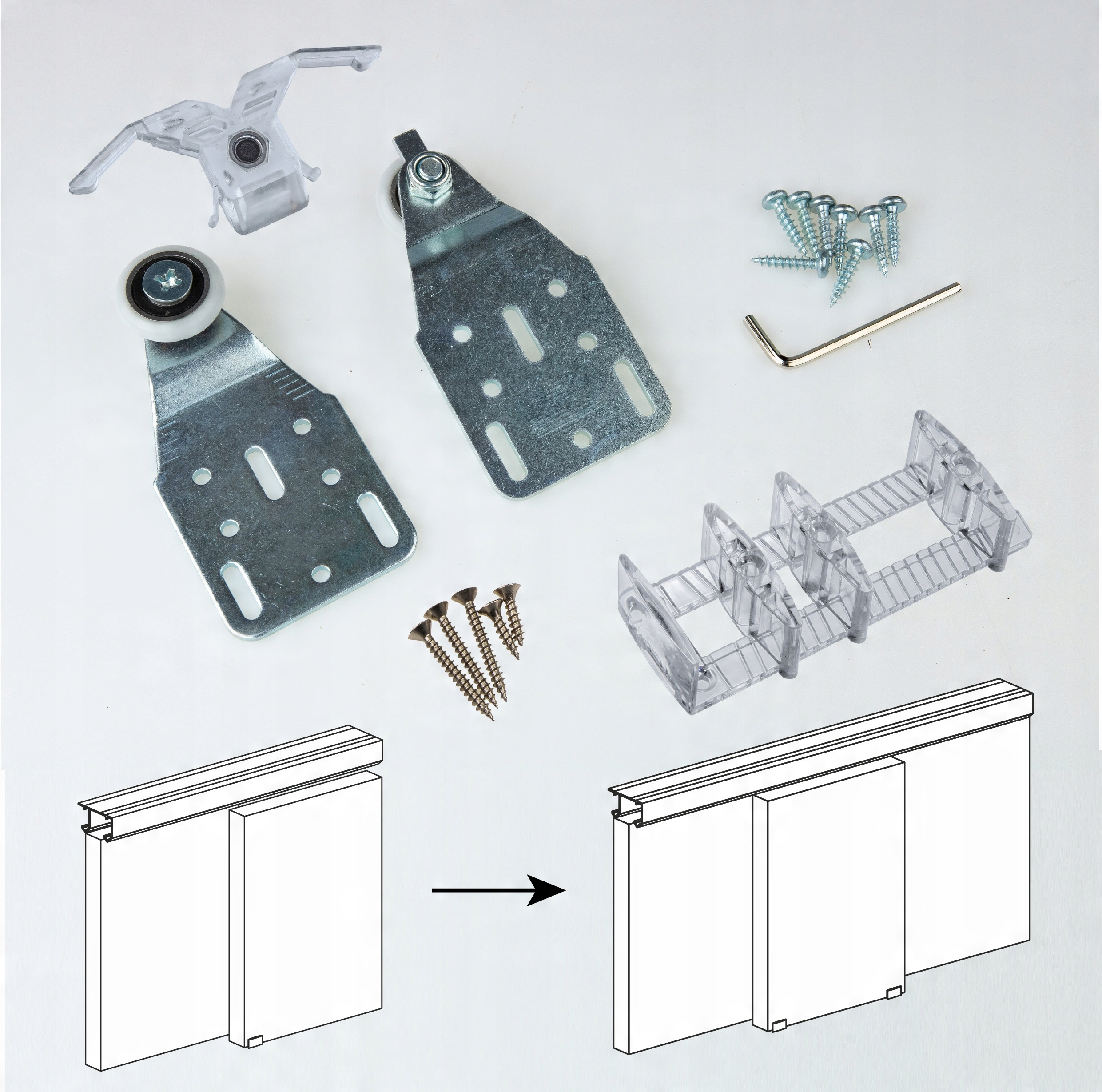 - набір гвинтів кріплення кареток до стулок - 1 набір.