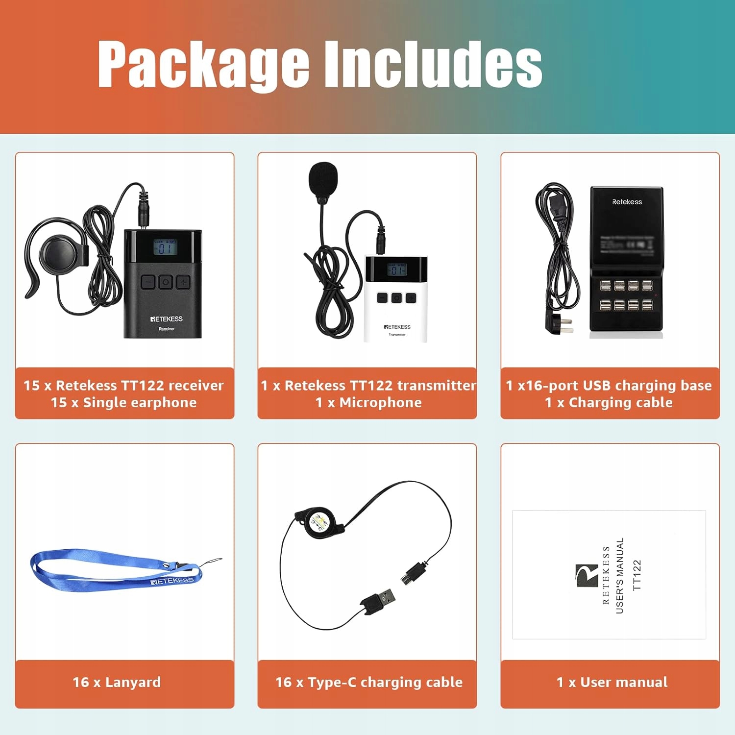Система екскурсоводів Rettekess TT122, екскурсовод, 150 м, 2,4 ГГц