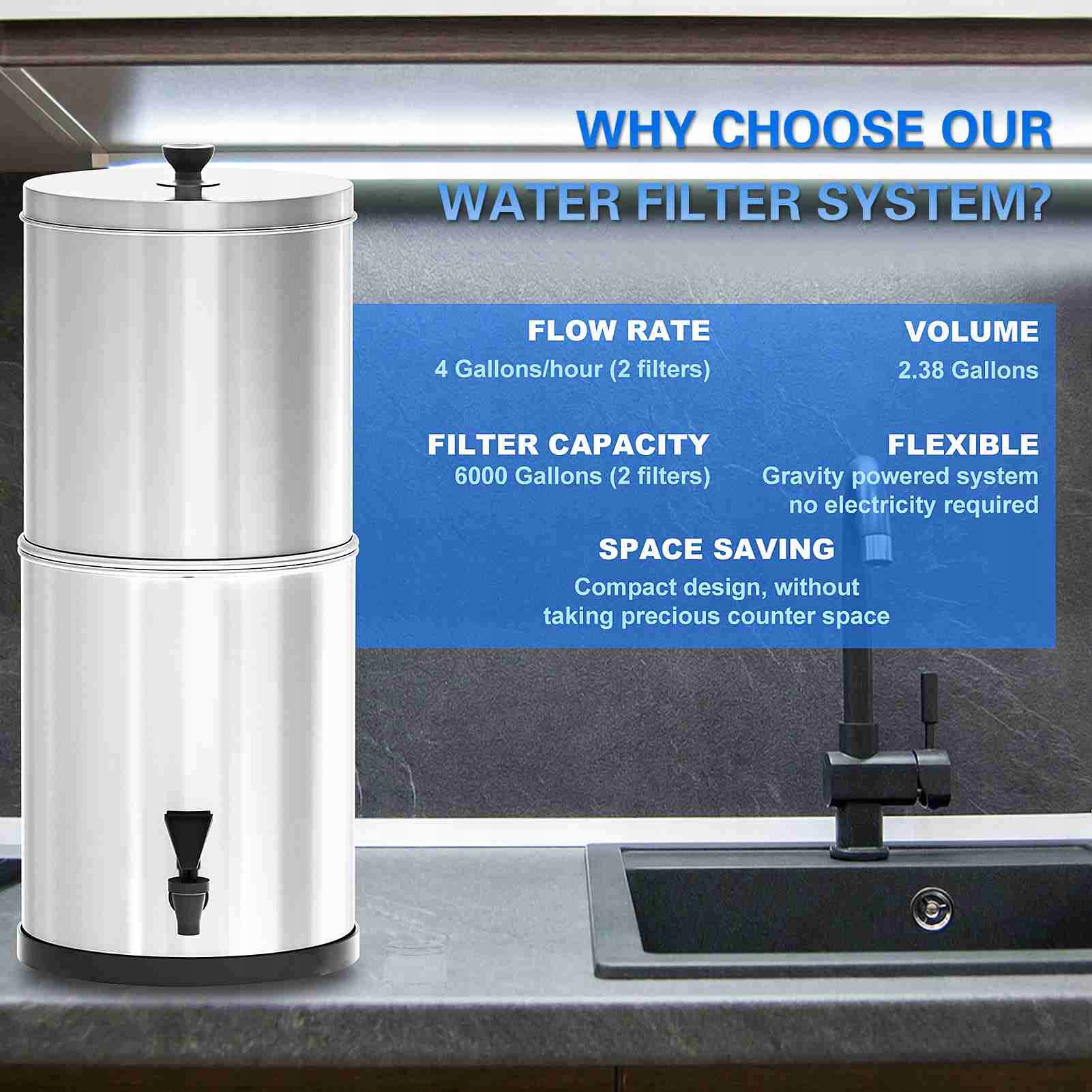 Функція:1. 2,38 ons велика місткість, швидка швидкість потоку до 4 включень на годину (з 2 фільтрами).