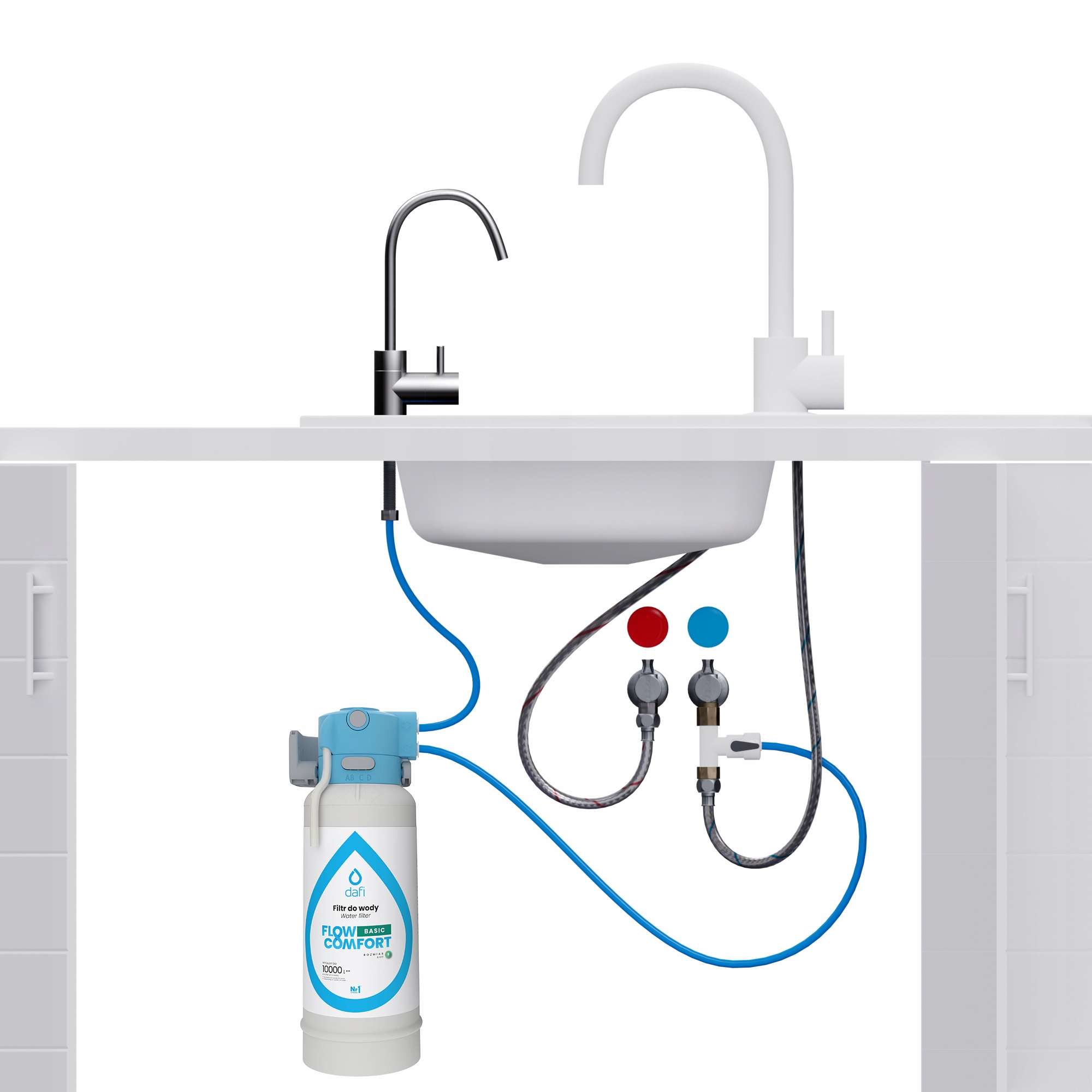 - Фільтр для води Dafi BASIC передбачає використання картриджа фільтра в різних варіантах установки під кухонну мийку з водою, що забирається зі звичайної холодної води. споживання. кран.