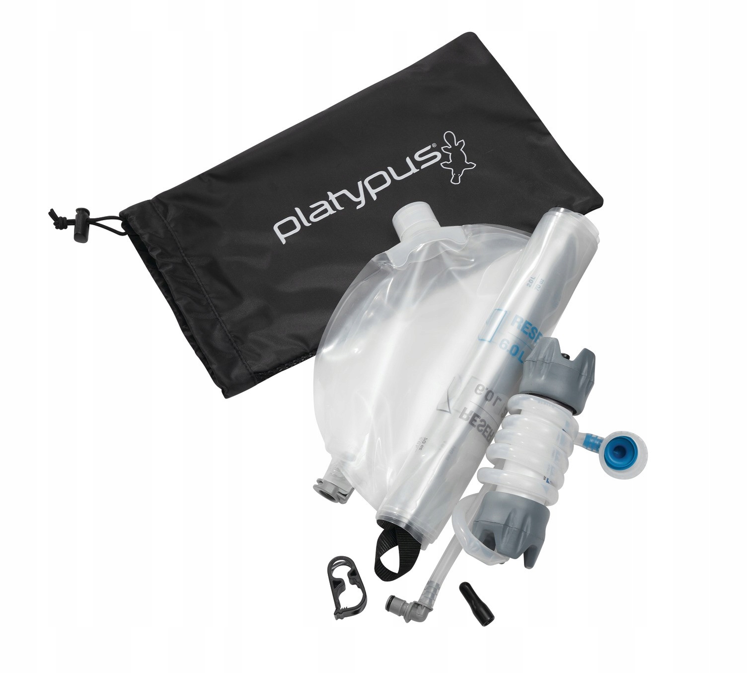 Фільтр для води Platypus GravityWorks 4,0 л і 6,0 л — це дуже проста у використанні система фільтрації води, яка обробляє та очищає воду та видаляє біологічні та механічні забруднення діаметром понад 0,2 мкм (включаючи бактерії, найпростіші). Він складається з двох ємностей різного кольору (один для брудної води, інший для чистої), з’єднаних між собою трубкою з вбудованим фільтром HollowFiber. Щоб використовувати чисту воду, просто наберіть воду з озера або потоку в ємність для брудної води, повісьте її та зачекайте 2,5 хвилини. Під дією сили тяжіння вода перетікає з ємності для брудної води в ємність для чистої води. Такий метод водопідготовки є відмінним і безпечним рішенням, яке дозволяє забезпечити чистою і питною водою навіть групу з кількох людей. Система кріплення трубок до контейнера призначена для полегшення пакування фільтра. Контейнери оснащені знімними гачками для перенесення та підвішування.