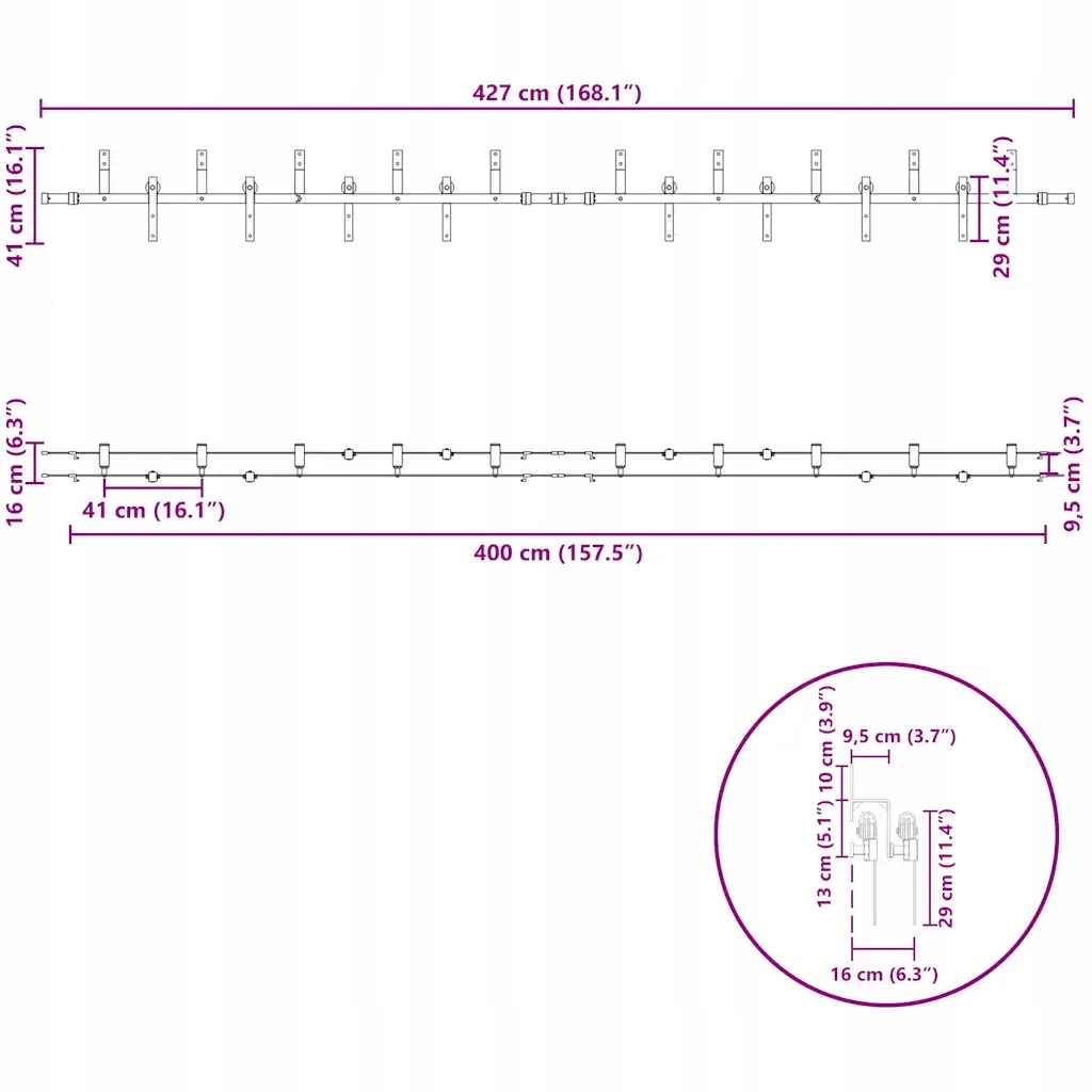 Система монтажу розсувних дверей, 305 см, сталь, чорний