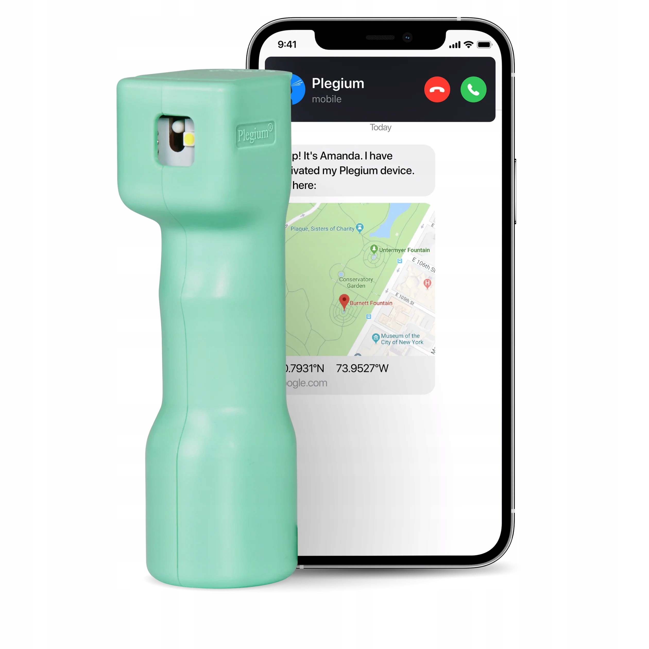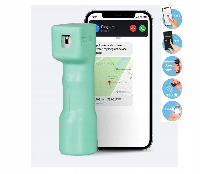 Plegium mint green to інноваційний розумний перцевий спрей, який підключається до телефону через Bluetooth і автоматично інформує наших близьких про небезпеку під час використання бластера . Додаток не лише відповідає за здійснення екстреного телефонного дзвінка з голосовою інформацією про подію, але й надсилає посилання з точним місцем розташування Google, завдяки чому ми маємо речові докази для правоохоронних органів.