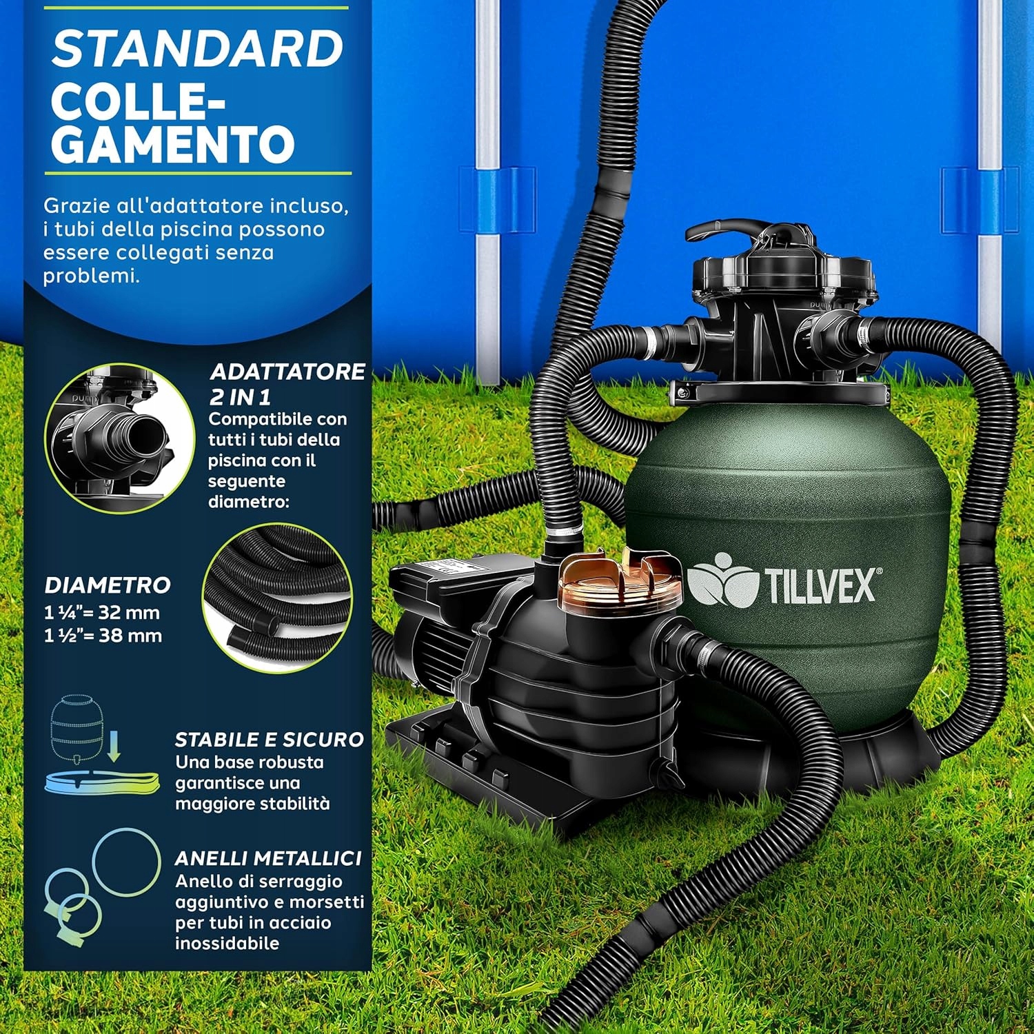 Завдяки вбудованому адаптеру можна використовувати з Шланги для басейну 32 або 38 мм. Система фільтрації підходить для басейнів або дитячих басейнів. Ефективний фільтр для басейну значно скорочує споживання води. Ось чому варто обрати нашу перевірену систему піщаних фільтрів.