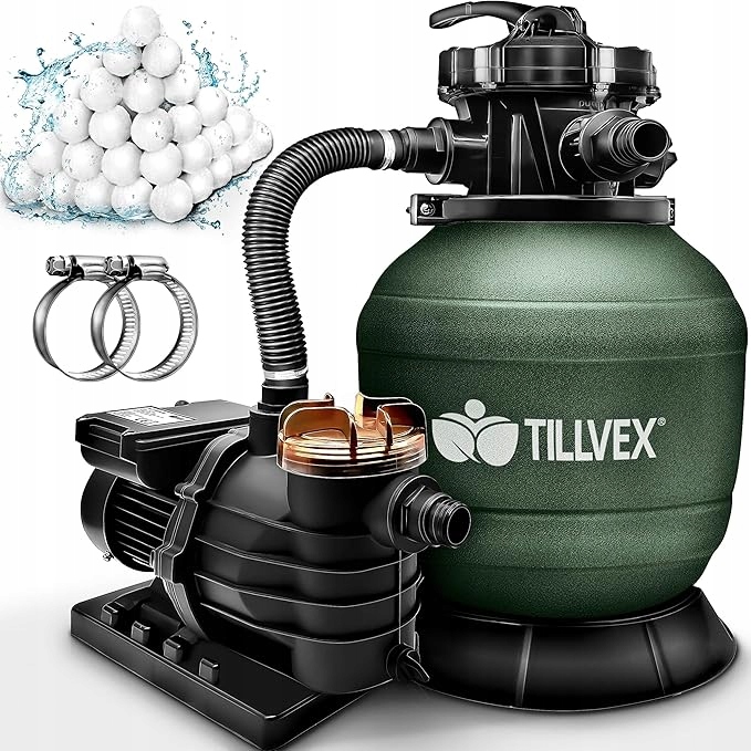 система піщаних фільтрів tilvex 13200 л/год з фільтруючими кульками 1200 г - Система фільтрів із 7-ходовим клапаном | Фільтр для басейну з індикатором тиску | Пісочний фільтр для басейнів і басейнів