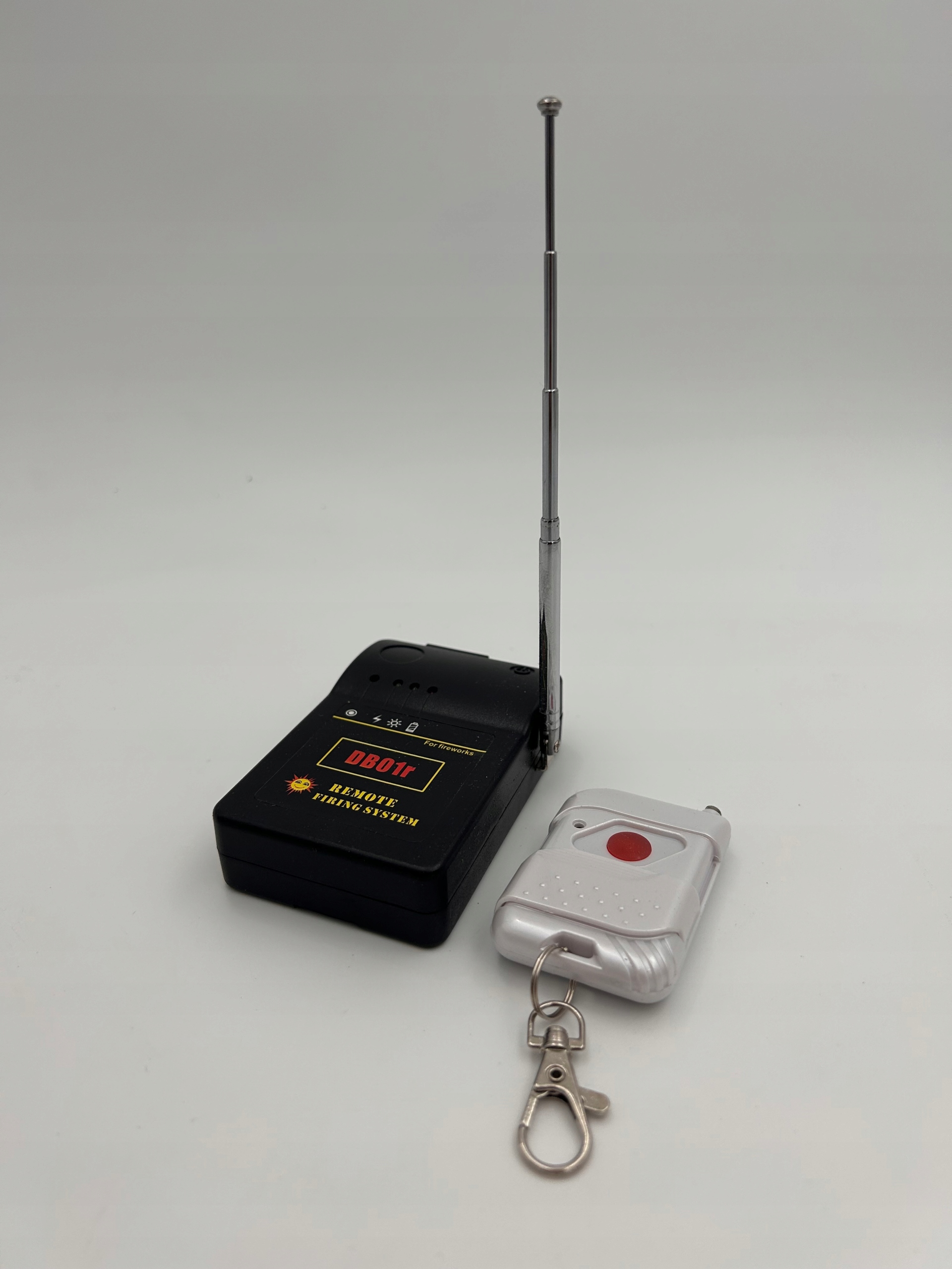 Представлена система дистанційного запалювання холодної іскри має 1 канал і передавальний пульт. (Набір дистанційного запуску не включає фонтанні вставки)