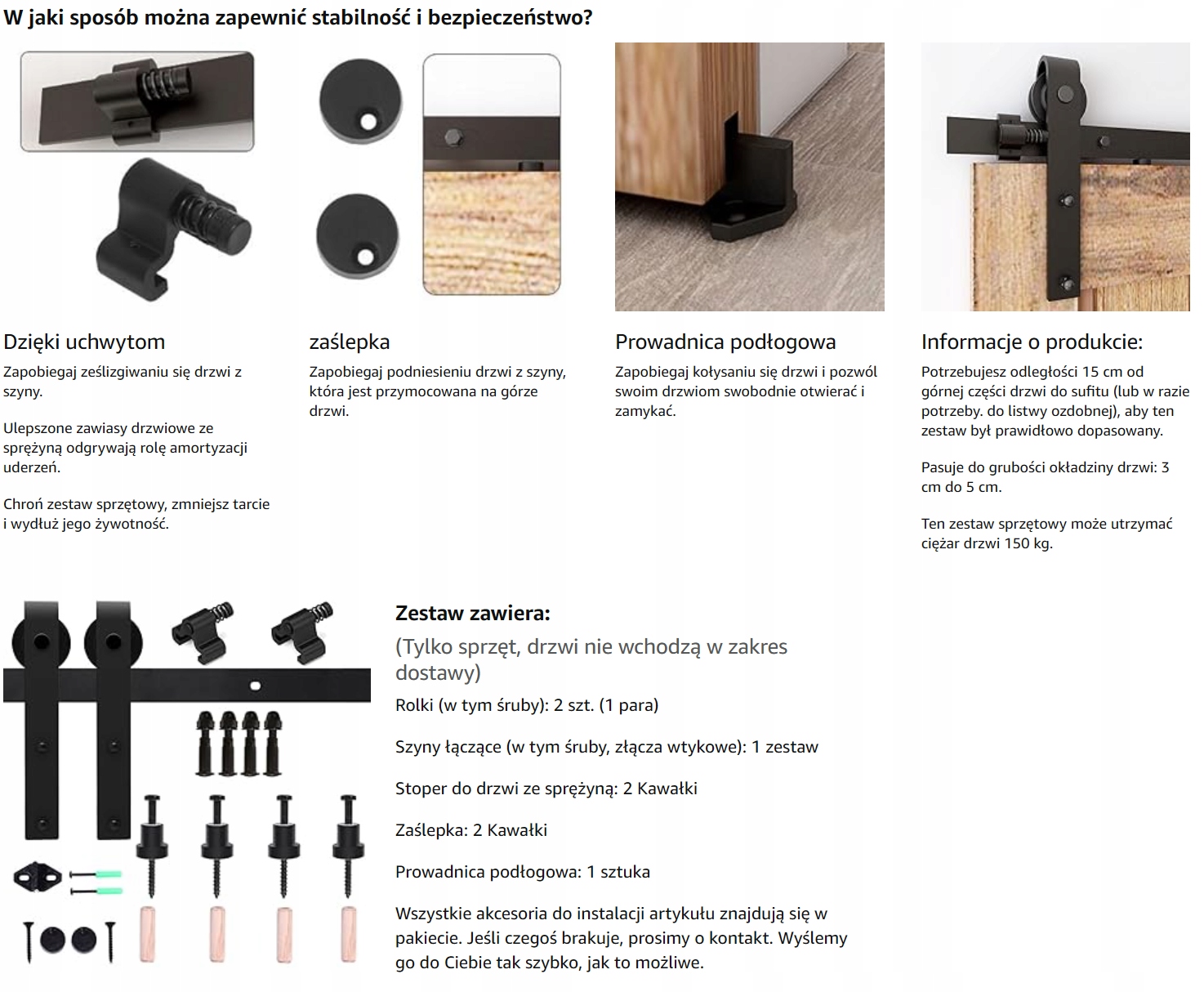 - 【Примітка】У продажу доступна лише фурнітура, двері не включені. Набір фурнітури 200 см для максимальної ширини дверей становить 100 см.