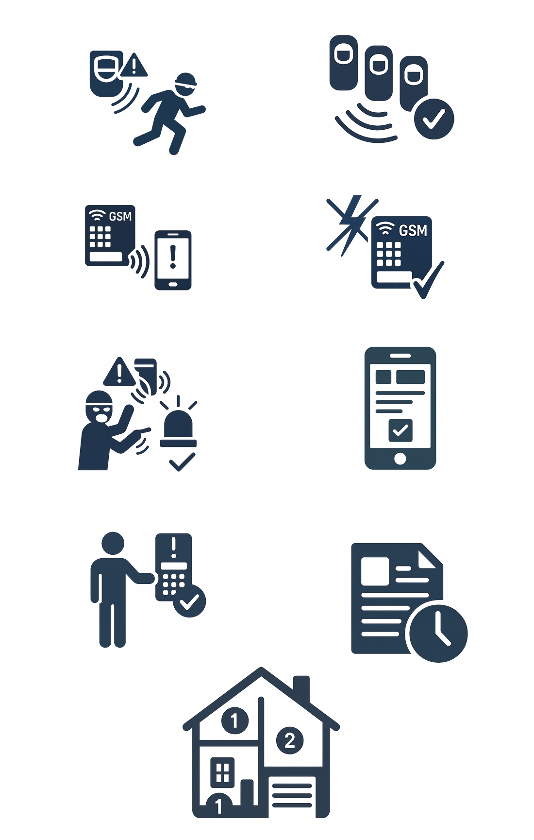 Система автоматично надсилає текстові повідомлення та дзвінки у разі тривоги, збою чи інших подій. Завдяки мобільному додатку ви можете в будь-який час поставити, зняти з охорони та перевірити стан безпеки з будь-якого місця. Це рішення, яке дає відчуття повного контролю над безпекою.
