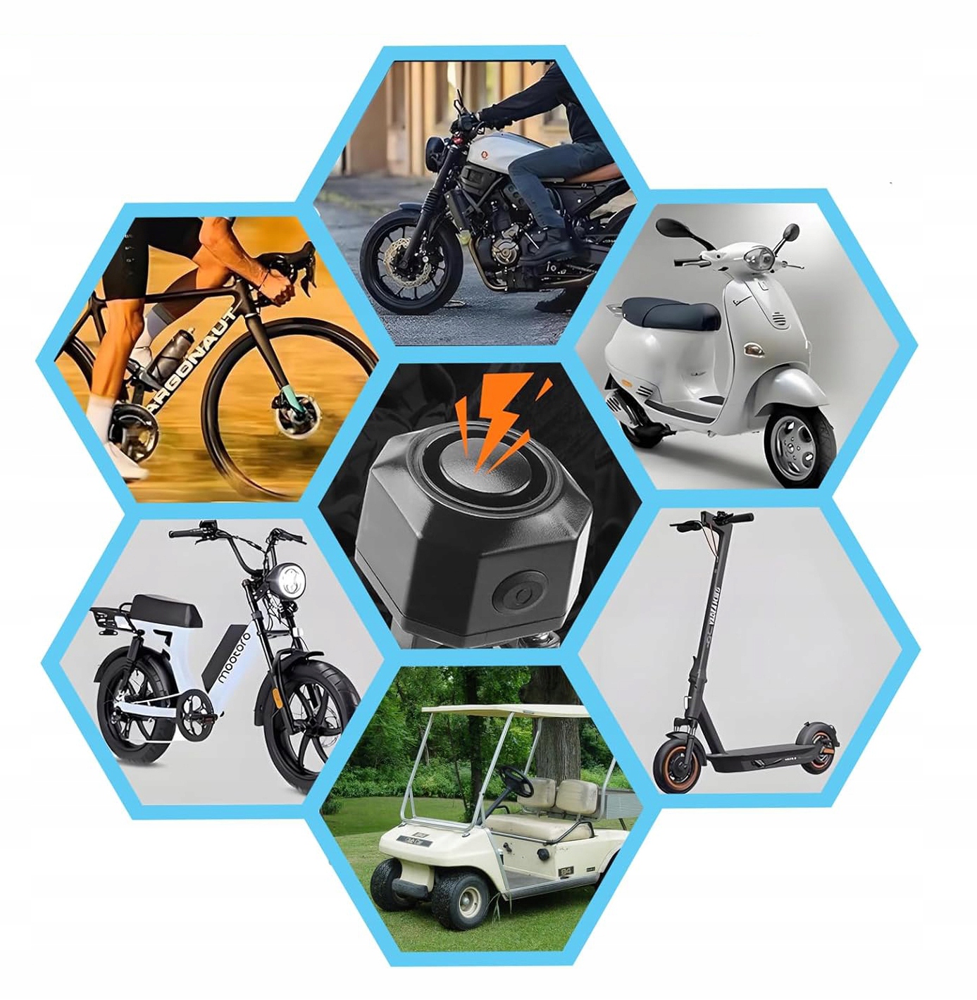 звільнена з вібраційними анти -трейськими тривожними з гучним звуком тривоги 113 дБ ефективно лякає злодіїв, забезпечує додаткову безпеку і заспокоює вас, коли стоянки вдома або зовні. Ця тривога є ефективним стримуючим агентом для тих, хто намагається проникнути або вкрасти велосипед, електричний велосипед або мотоцикл. Має 7 регульованих рівнів ніжності від високого до низького.