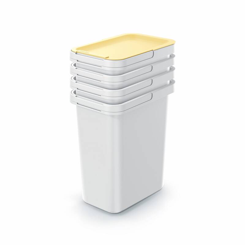 Практичний Набір чотирьох контейнерів для сегрегації відходів від серії систем -це комфортне, а для домашнього, офісу, офіс. Кожен кошик має місткість 12 літрів і оснащений барвистим клаптям (жовтий, зелений, коричневий та синій), що значно полегшує сортування окремих відходів. 4 Набір також включає виділені вішалки , які дозволяють встановлювати контейнери на стіні або меблеві фронти, що дозволяє заощадити місце.