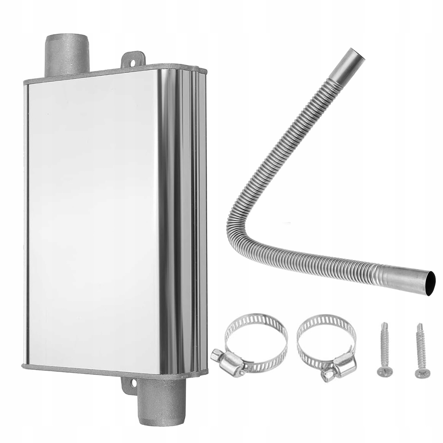 - ☑️Є також два хомути та гвинти з нержавіючої сталі, які краще закріплюють вихлоп паркувального обігрівача та забезпечують ідеальне ущільнення.