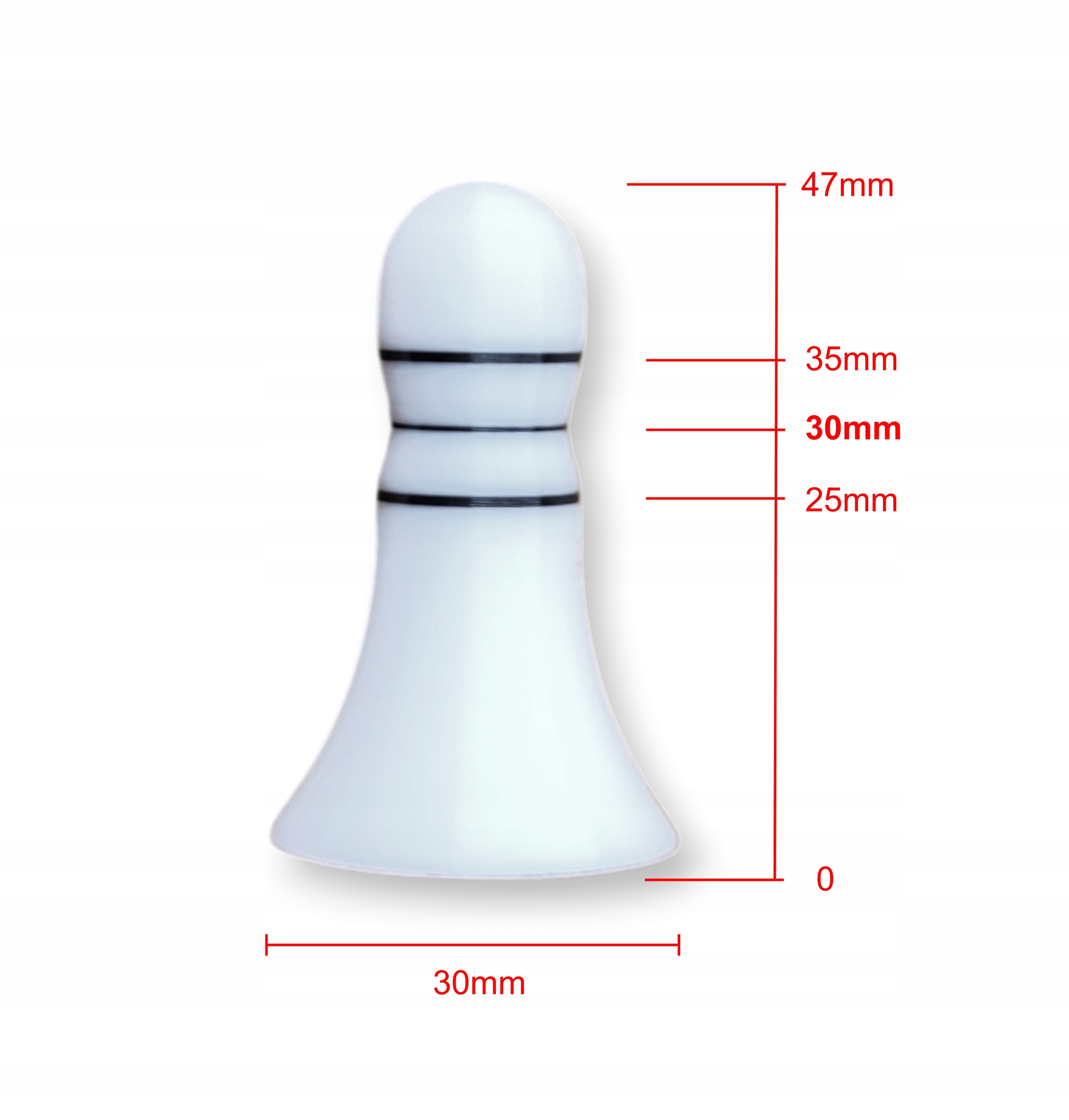 Кожна пішак точно визначає постійну висоту 30 мм від основи, що значно полегшує та прискорює нівелювання лазером. Щоб зробити вирівнювання простішим і точнішим, додано дві допоміжні лінії на висоті 25 мм і 35 мм.
