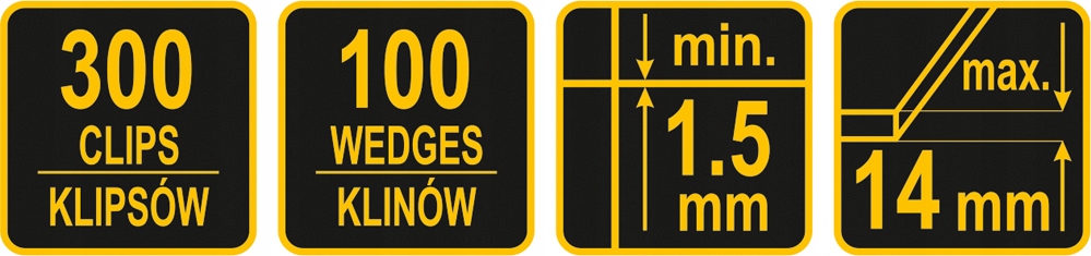 - Кількість [ шт.]: 300 затискачів + 100 клинів