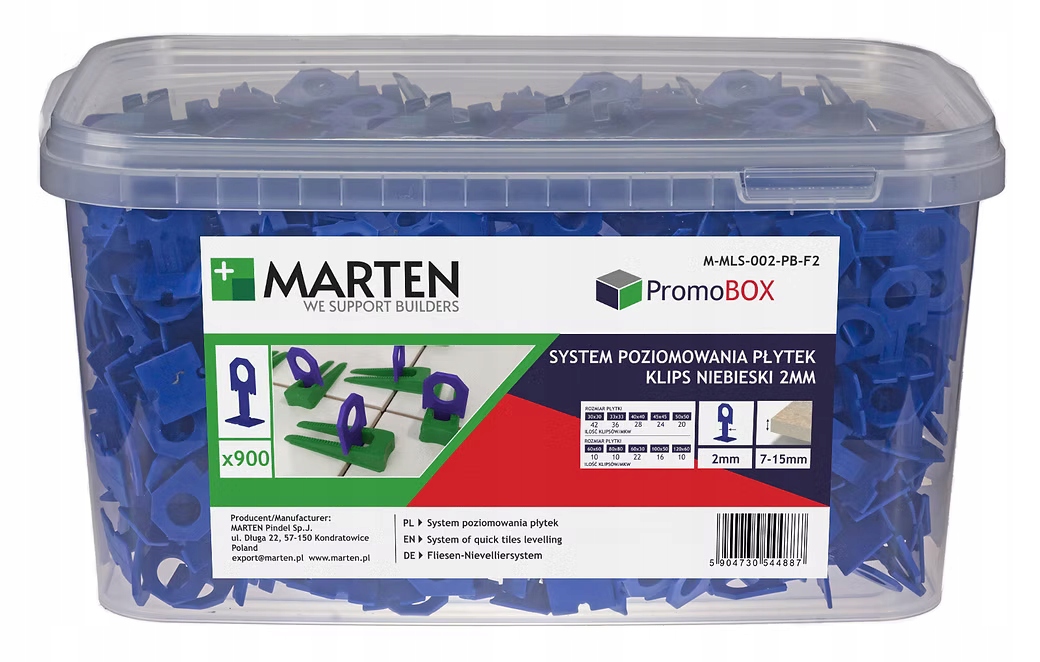 СИСТЕМА ВИРІВНЮВАННЯ ПЛИТКИ 900 КЛІПС 2мм MARTEN